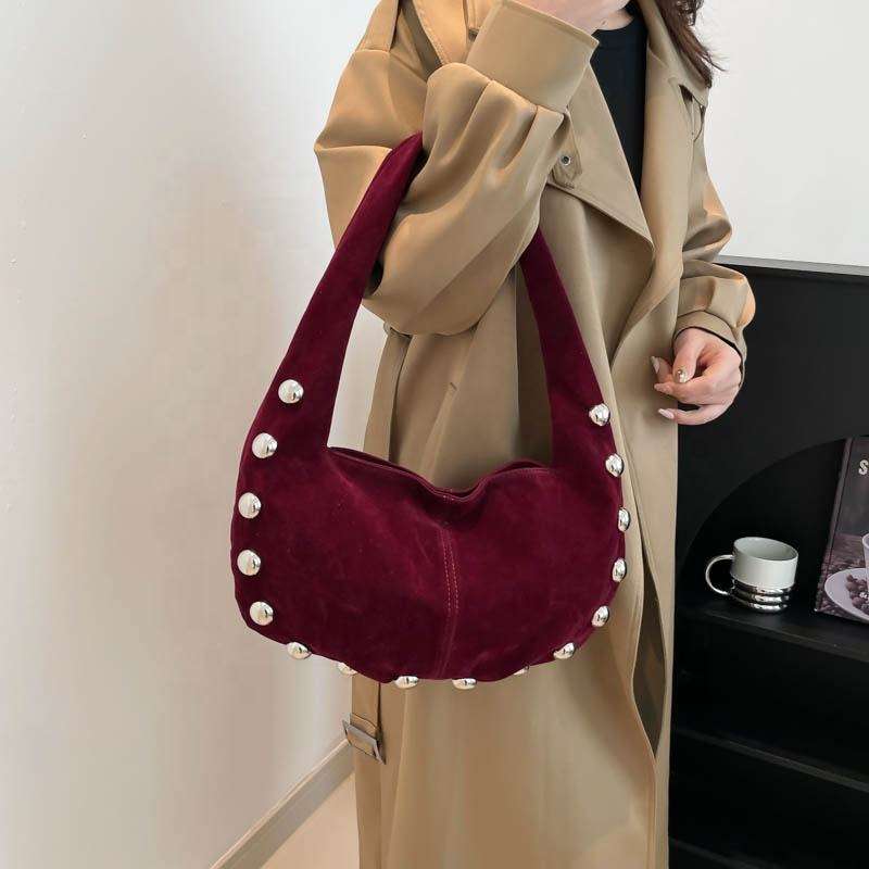 2026 Women's Handbag Riveted Soft PU Leather Half Moon Women's Underarm Shoulder Bag