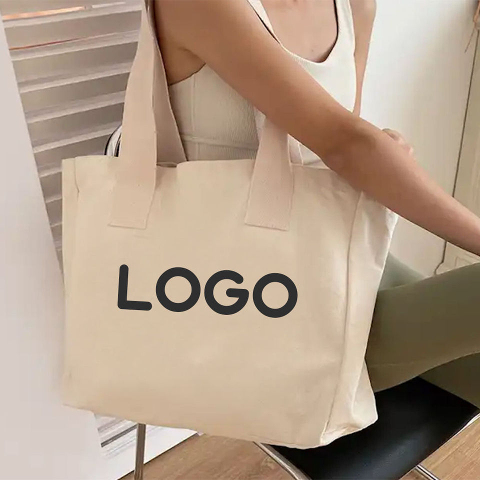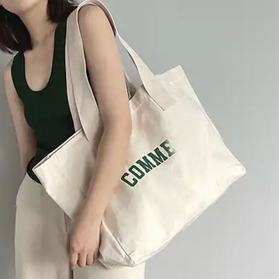 2026 Women's Lightweight Customizable Waterproof Canvas Tote Bag Letter Pattern Spacious Design Shoulder Closure Ribbon Shopping