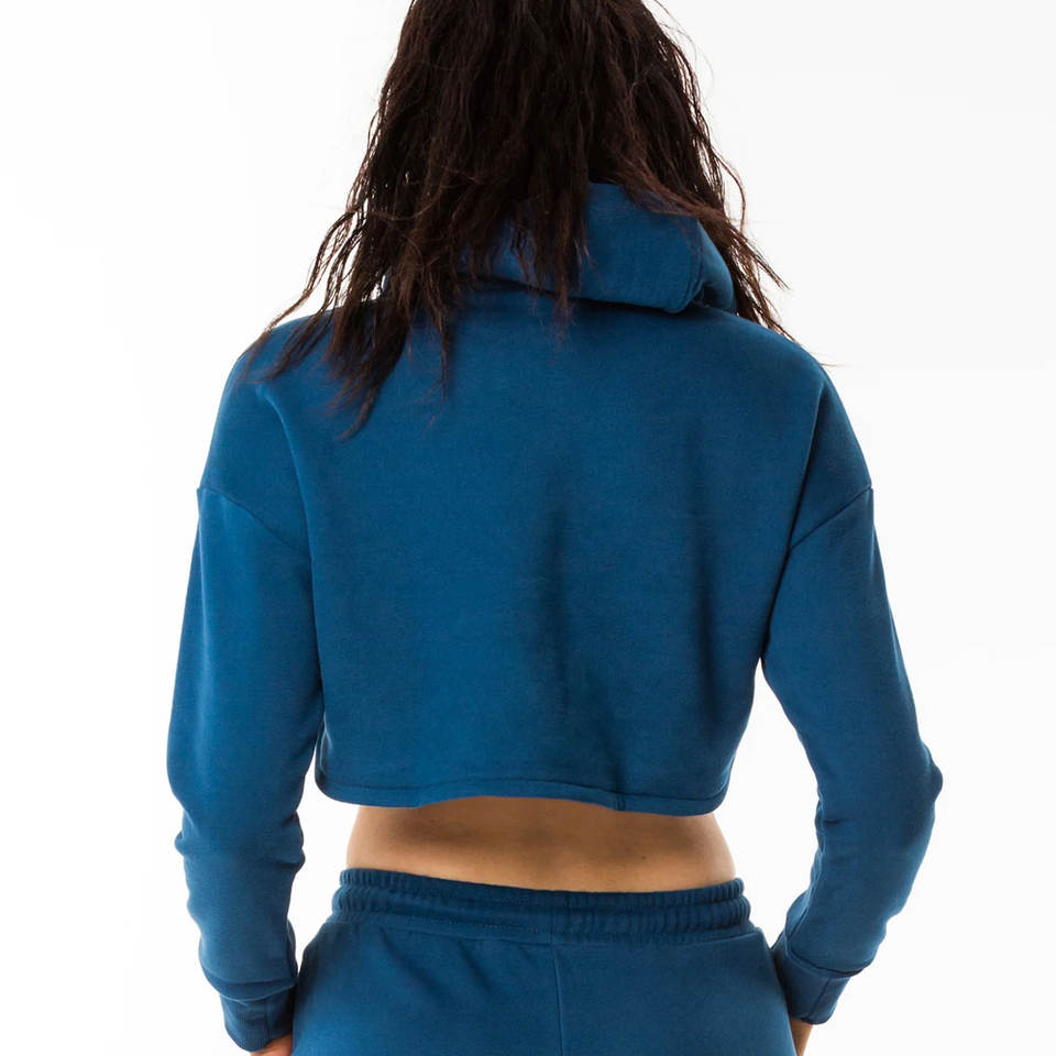 2026 Women's Winter Thick Fleece Cotton Hoodie Set Custom Crop Top Jogger & Stack Sweatpants Solid Pattern Patches Decoration
