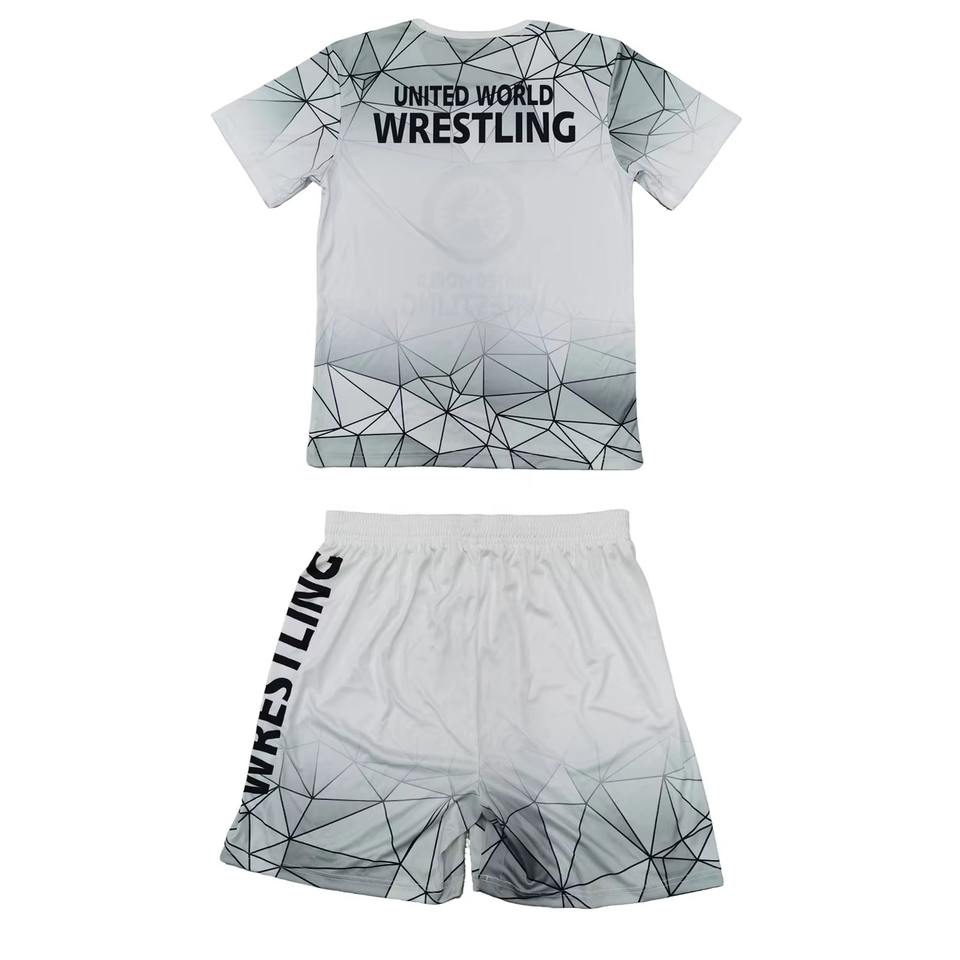 2026 custom men's knitted wrestling set T-shirt and shorts full sublimation 2 piece set for international competitions