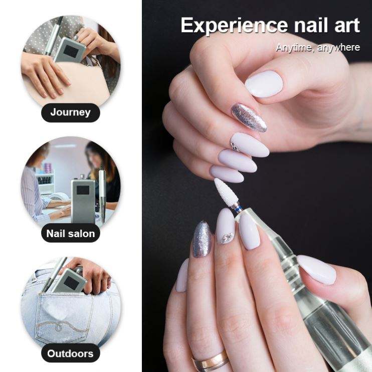 Professional Mini Portable Nail Drill Polisher Rechargeable 45000 RPM Carbide V1 Manicure Pedicure Drill Bit Set Sanding Bands