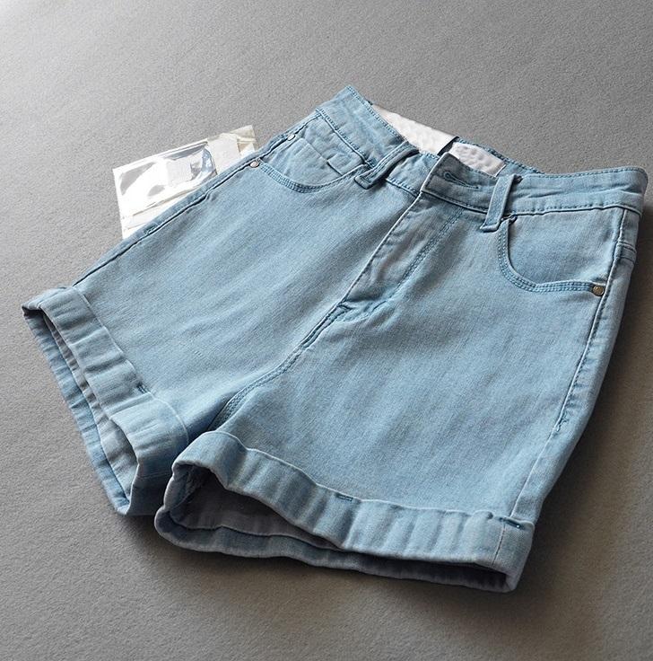 203 Light Blue Denim Ripped Washed Women Jeans Short Denim Shorts White and Sky Blue Solid Color's Custom Denim Jeans Shorts