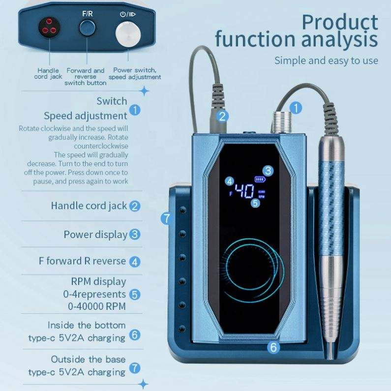 Brushless Professional Portable Strong E File Nail Drill Machine