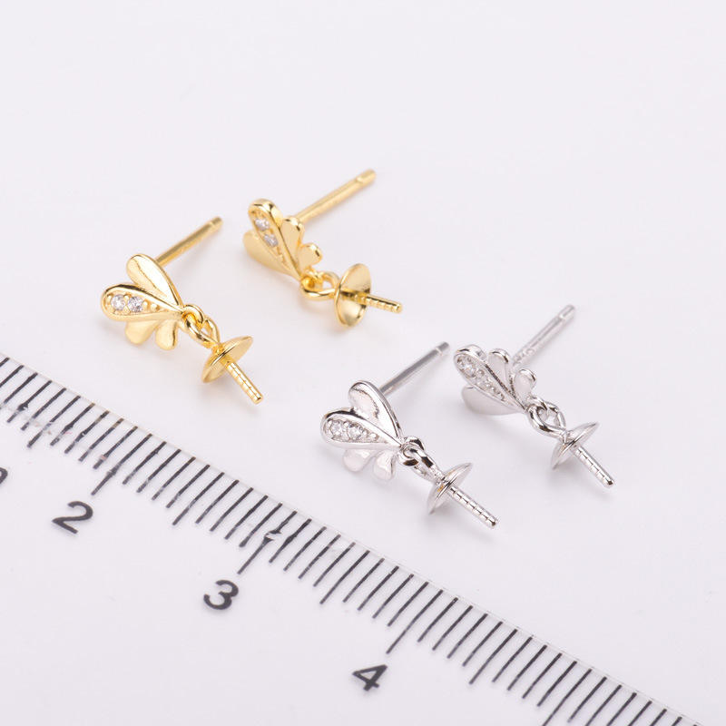 20374DIY Silver Jewelry Earrings S925 Silver Earnail with Empty Tray Leaf 8-11mm Round Beads Pearl Accessories Accessory