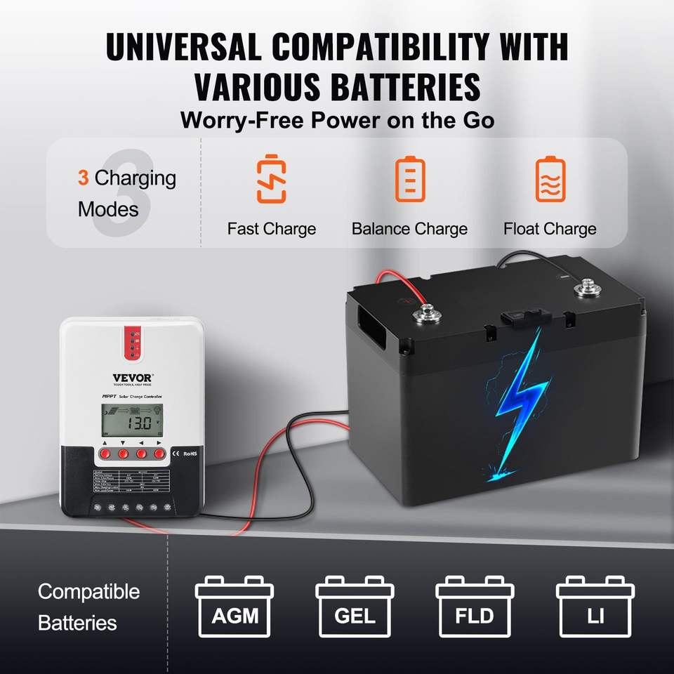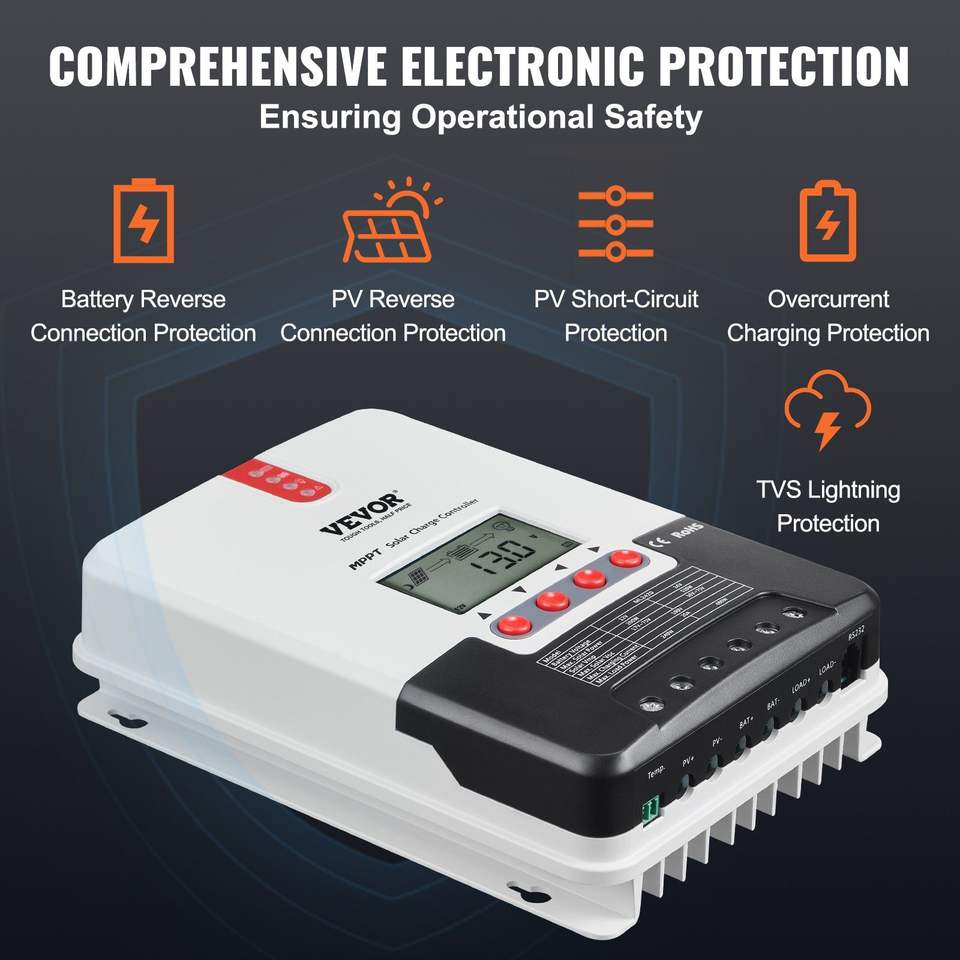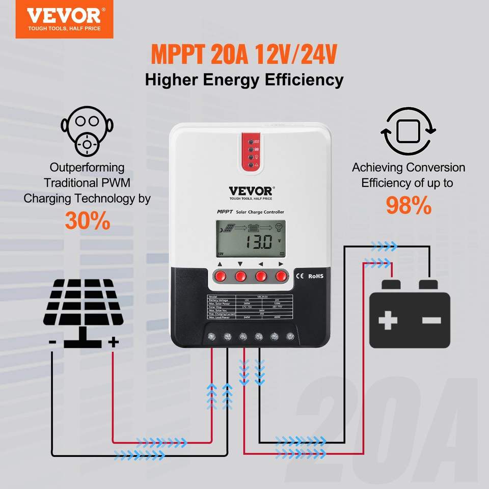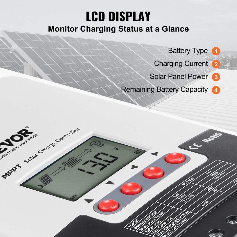 20A MPPT Solar Charge Controller LCD Display Auto DC 12V/24V Input Temperature Sensor Sealed Cable for AGM Gel Flooded Charging