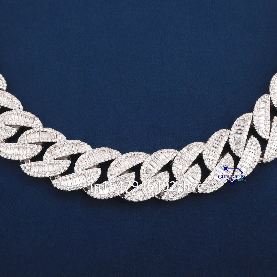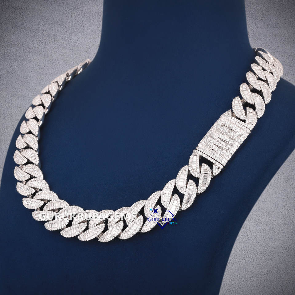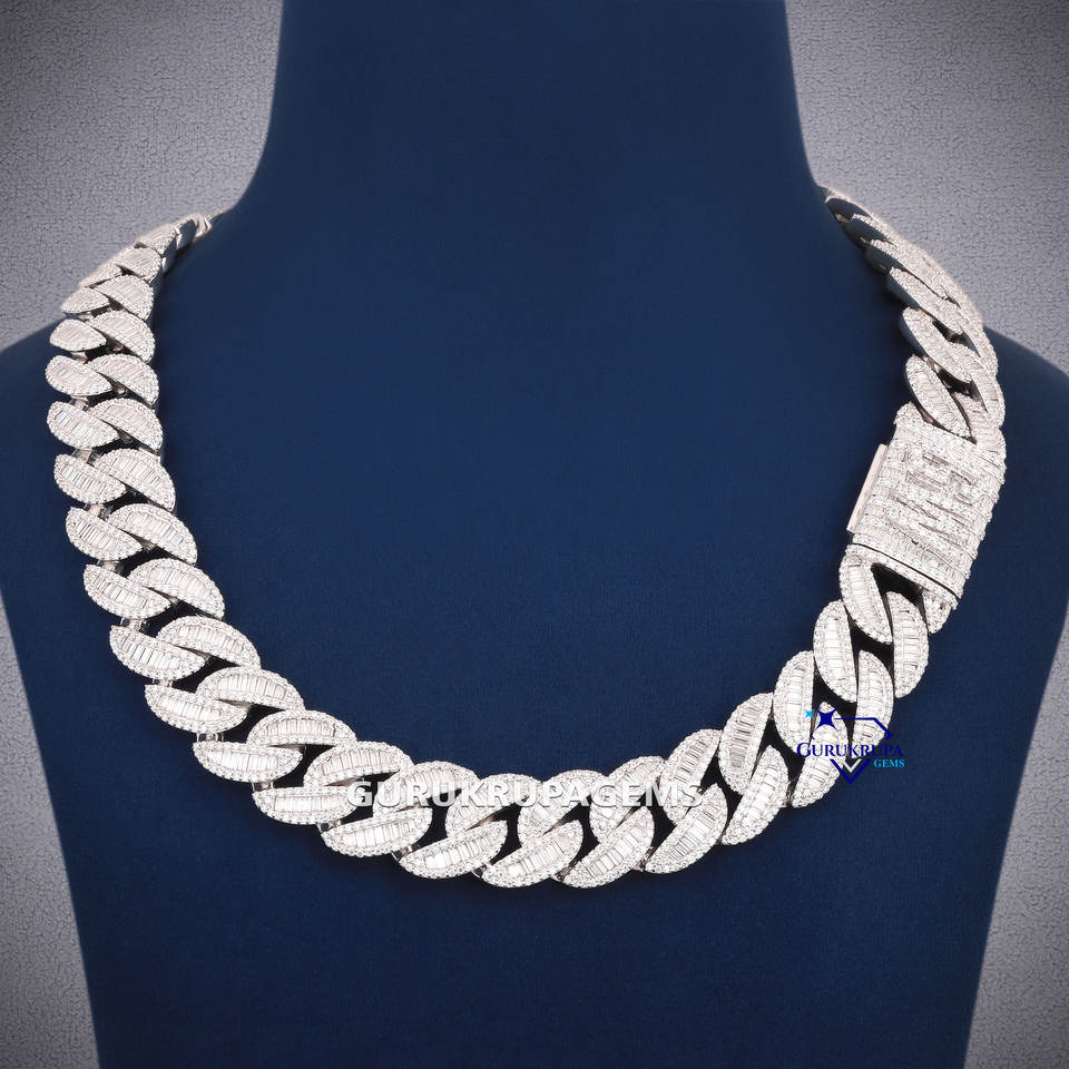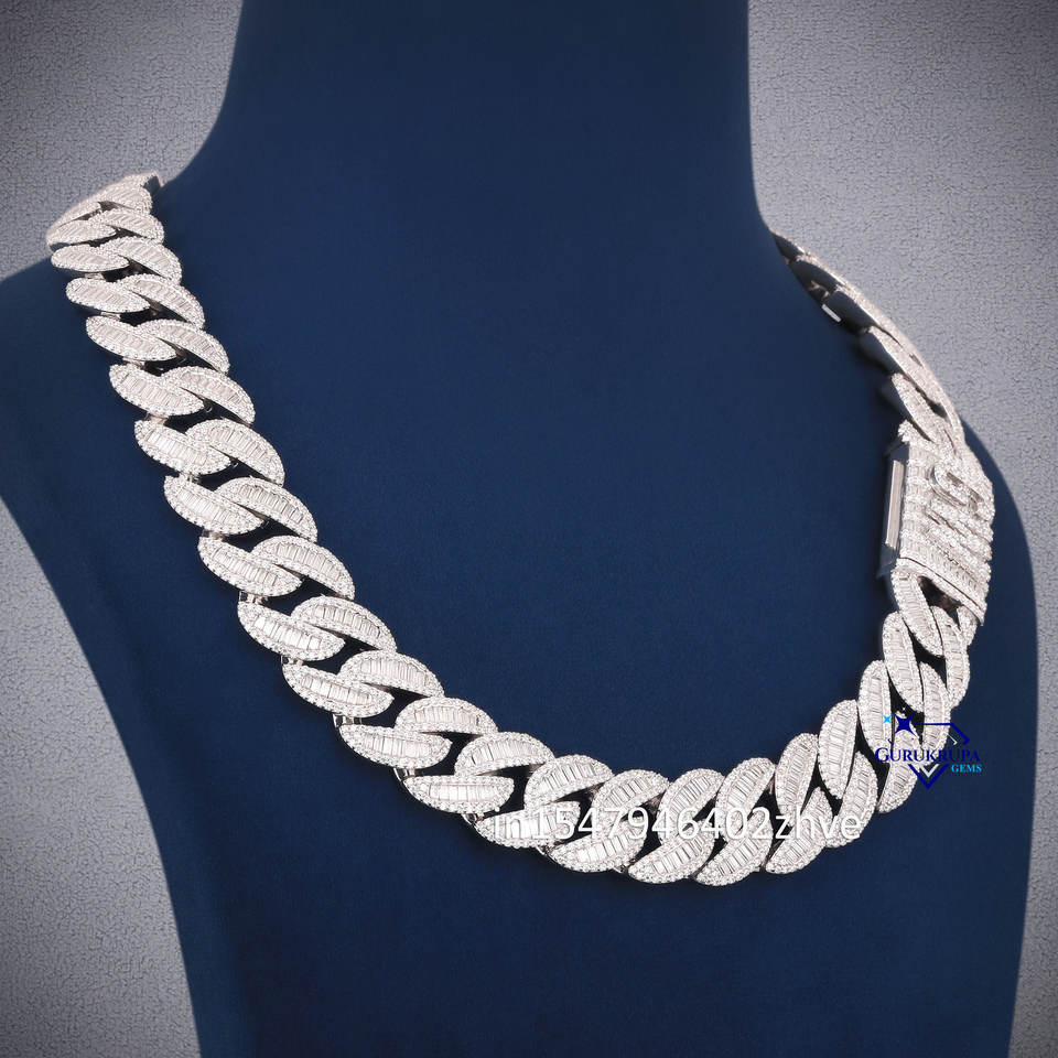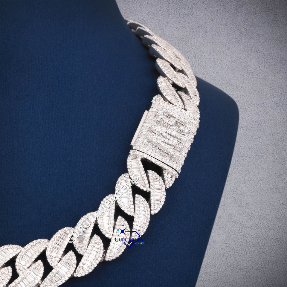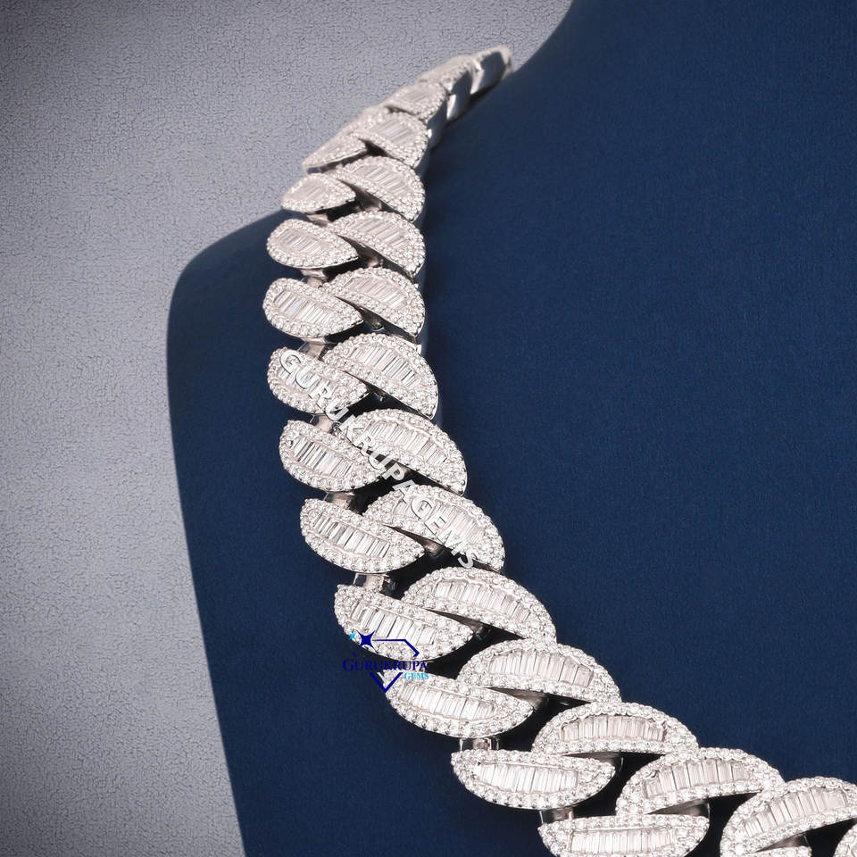 20mm Hiphop Cuban Necklace 925 Sterling Silver Iced Out Baguette Miami VVS Lab Grown Diamond Cuban Chain Jewelry