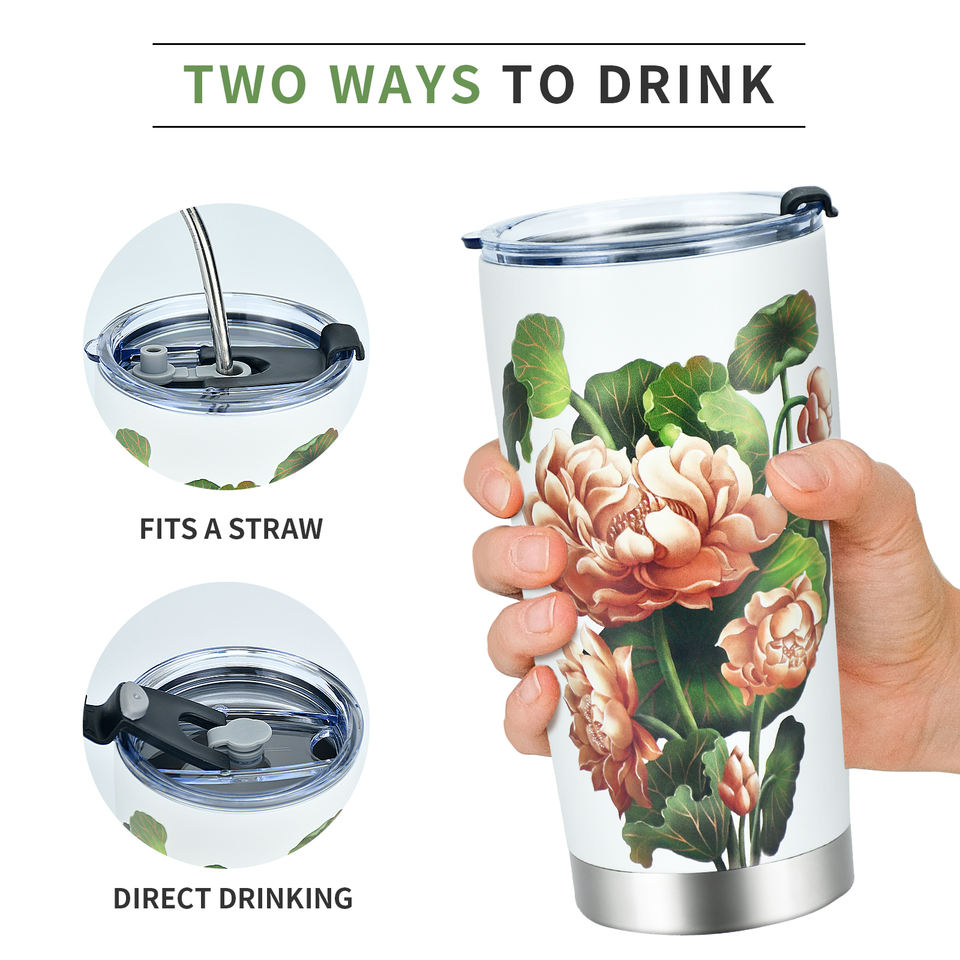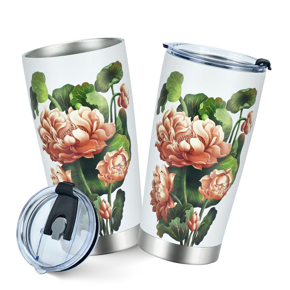 20oz Beautiful Flower 3D Printed Stainless Steel Double Wall Insulated Travel Cup Coffee Tumbler Water Sealing Business Gifts