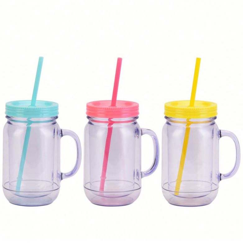 20oz Double Wall Acrylic Mason Jar Pre-Drilled Snow Globe Tumbler Custom DIY Personalized Plastic Cups UV DTF Glitter