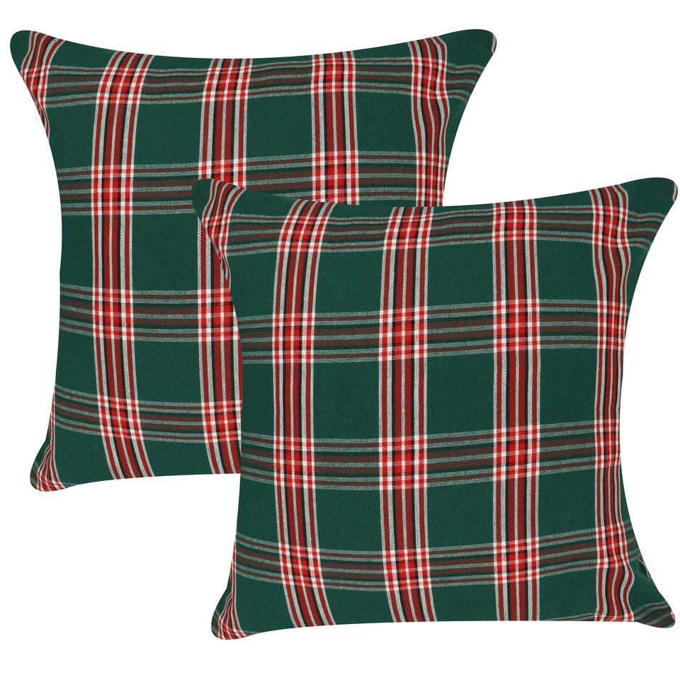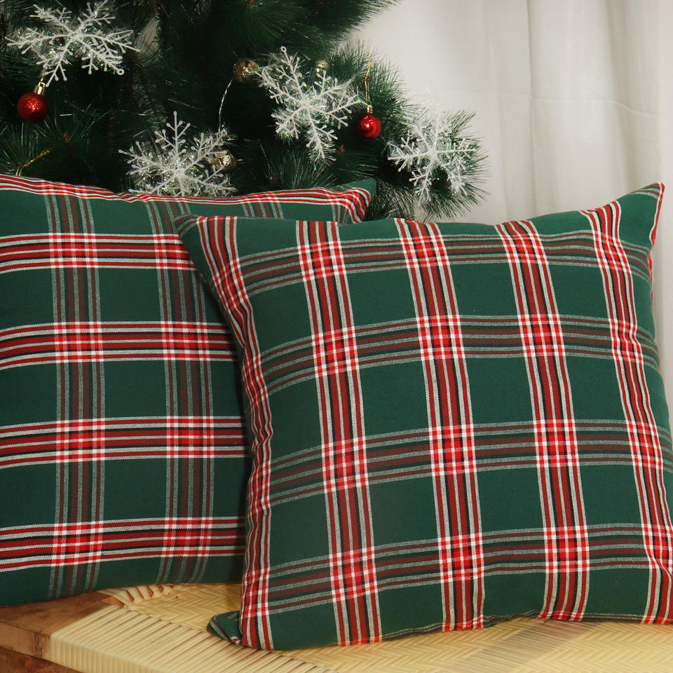 20x20 Inch Square Farmhouse Christmas Decor Plaid Scottish Green Tartan Cotton Throw Pillow Covers Woven Decorative Cushion Home