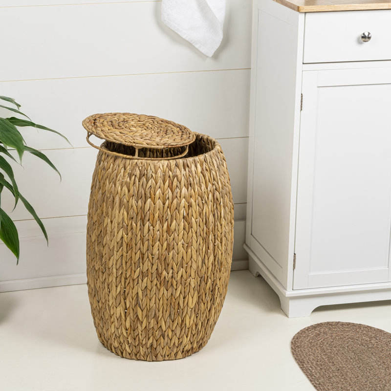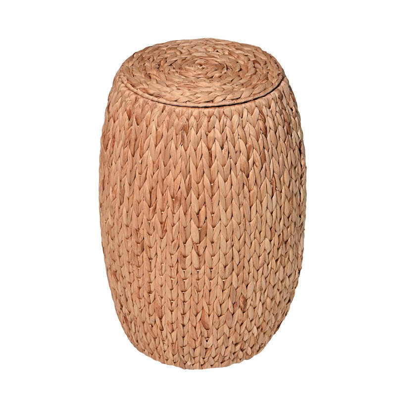 21.06 Coastal Bohemian Hyacinth Barrel Storage Stool with Lid Handwoven Seating Ottoman