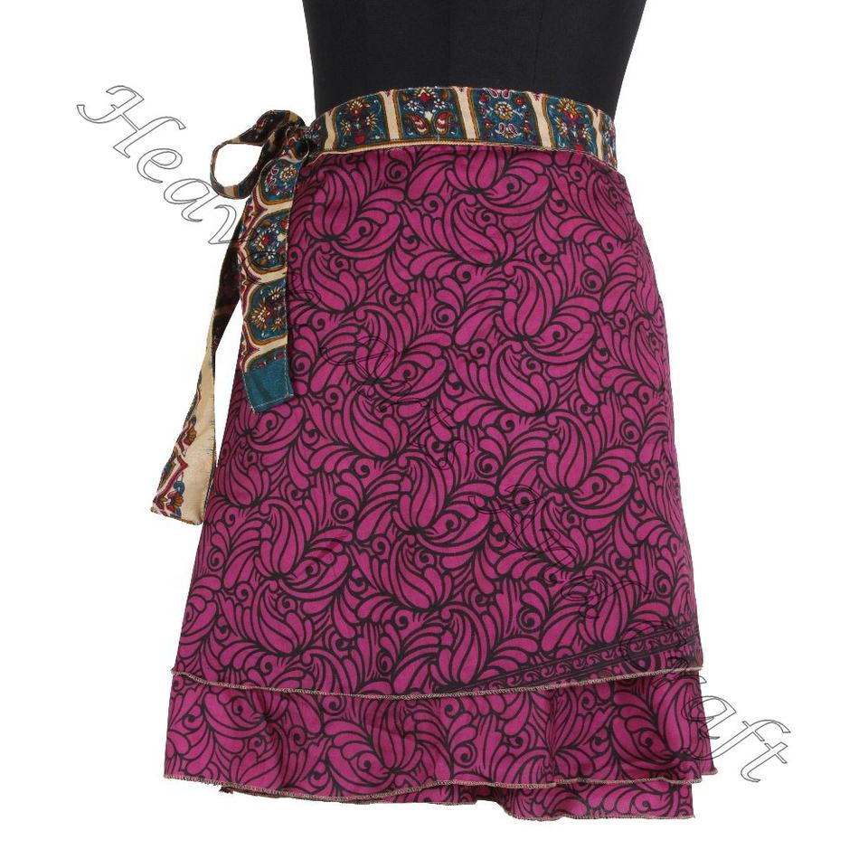 21 Inch 2023 Fashion for Women 2 Layered Art Silk Sari Reversible Summer Beach Wear Magic Wrap Mini Skirts