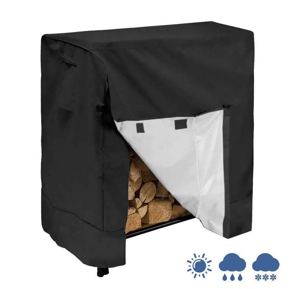 210D Silver-Coated Oxford Cloth Firewood Cover Outdoor Firewood Rack Windproof and Rainproof Dust Tarp with Wooden Cover