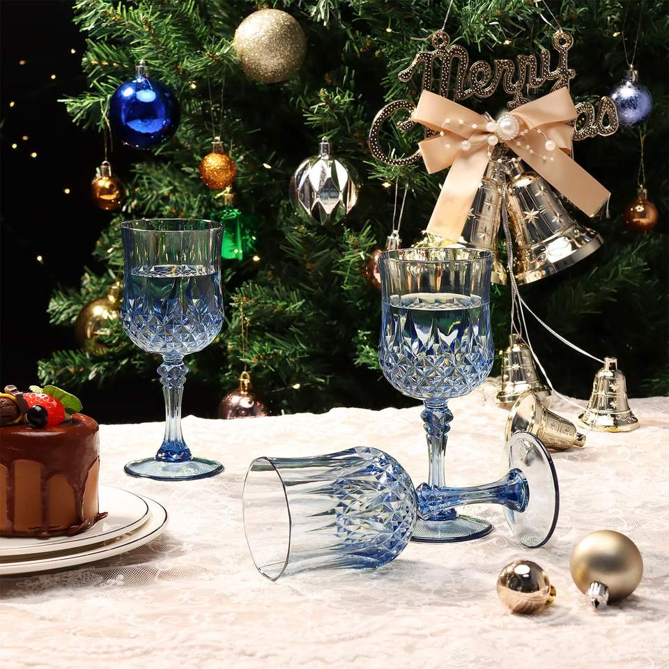 210ml 7oz Plastic Blue Vintage Wine Glasses Drinking Glasses Unbreakable Wedding Glassware Crystal Water Goblets
