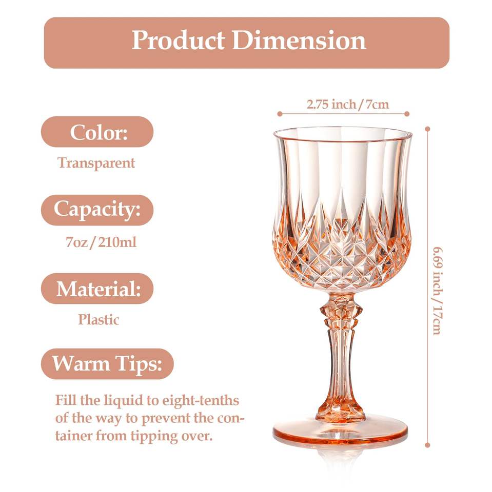 210ml 7oz Plastic Pink Vintage Wine Glasses Drinking Glasses Unbreakable Wedding Glassware Crystal Water Goblets