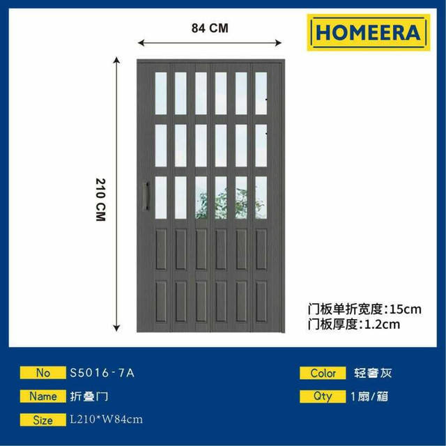 210x84cm Sliding Door for Home Office Hotel Mall Bathroom Entry with Light Gray Finish Wooden Frame Glass Panels for Home Office