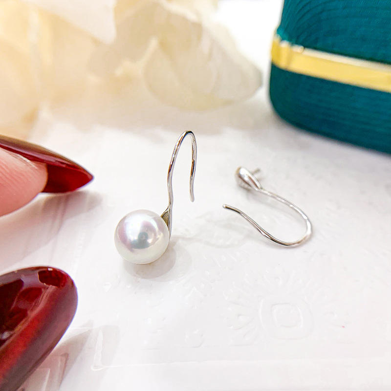 21290 S925 Silver Ear Nail Empty Holder Simple Compact Silver Ear Hook with 6-8mm Round Beads DIY Pearl Earrings Accessory