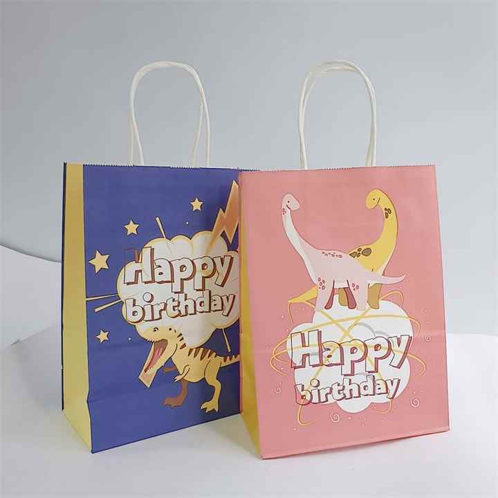 22*11*27cm Luxury Colored Cartoon White Kraft Paper Bag for Children Gift Birthday With Twisted Handle