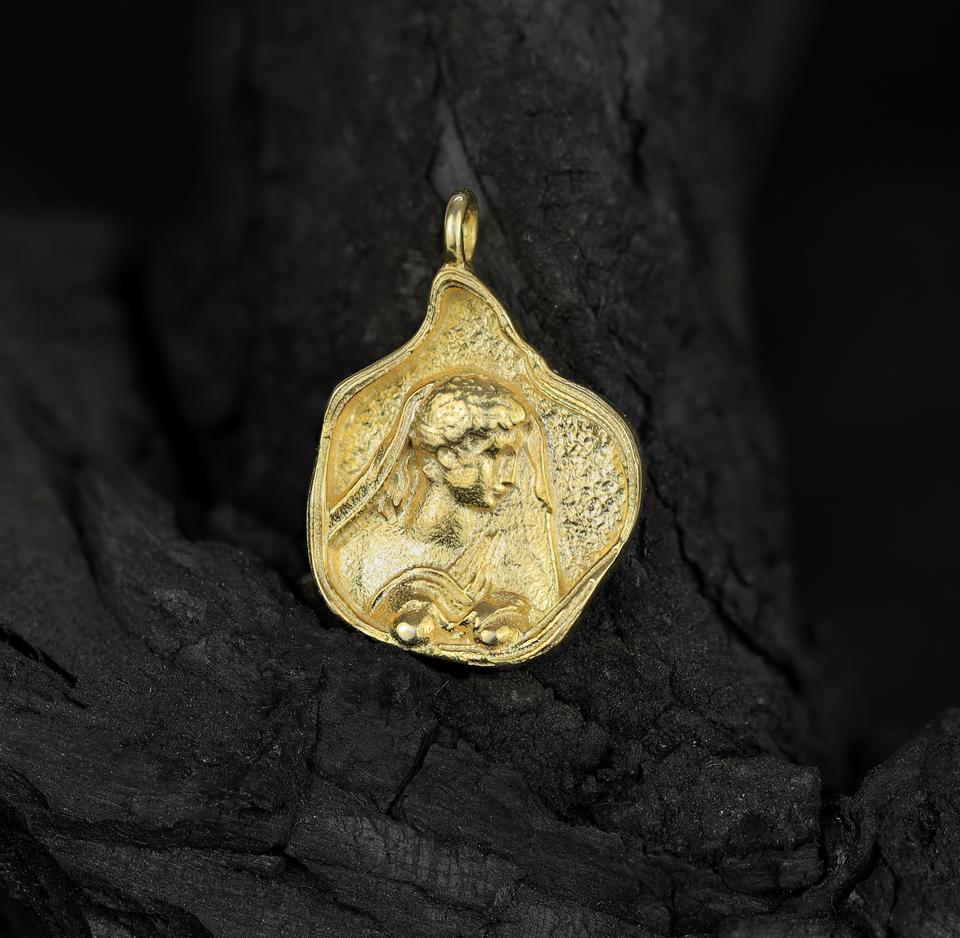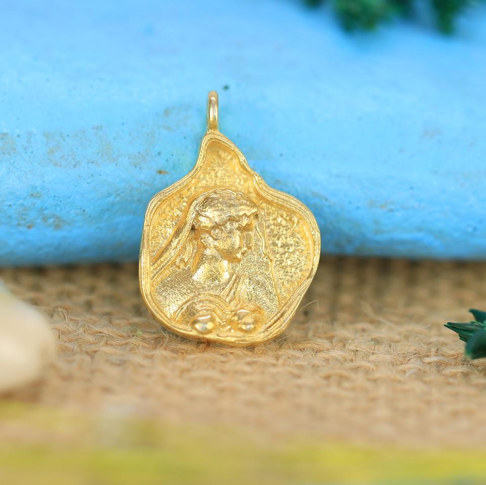 22.7MM Length Carved Lady Pendant 18K Gold Plated Solid 925 Sterling Silver Statement Pendant For Necklace Fine Jewelry For Gift