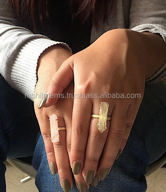 22 Ct Rose Gold Plated Rock Crystal Adjustable Cocktail Statement Ring in Pencil Shape Classic Style for Parties Anniversaries