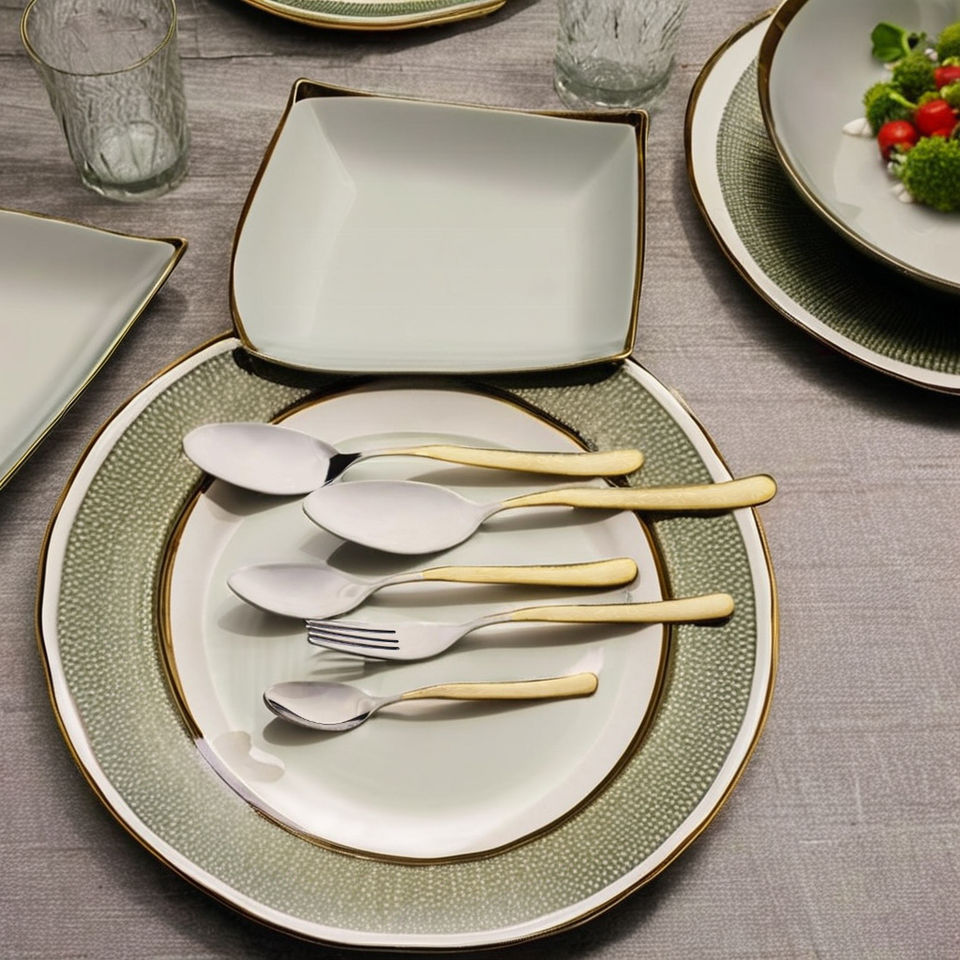 22 Karat Pure Gold Plated Stainless Steel 29 Pcs Cutlery Set 10 Person Serving Dinners Lifetime Plating Guarantee