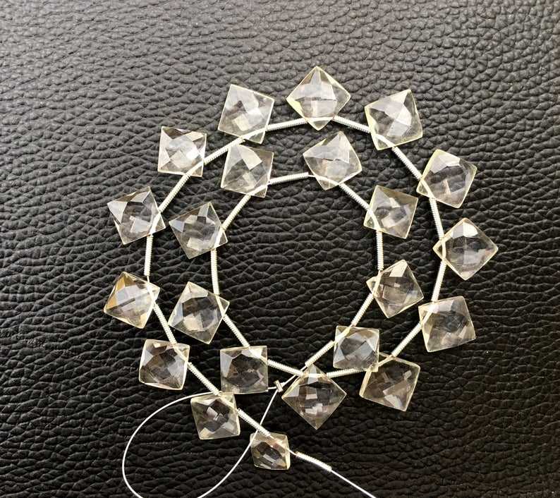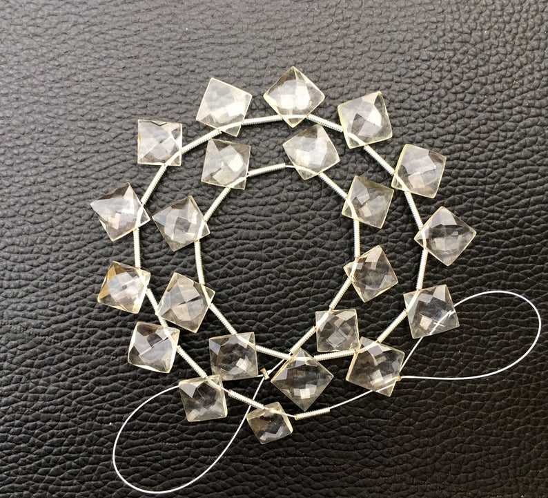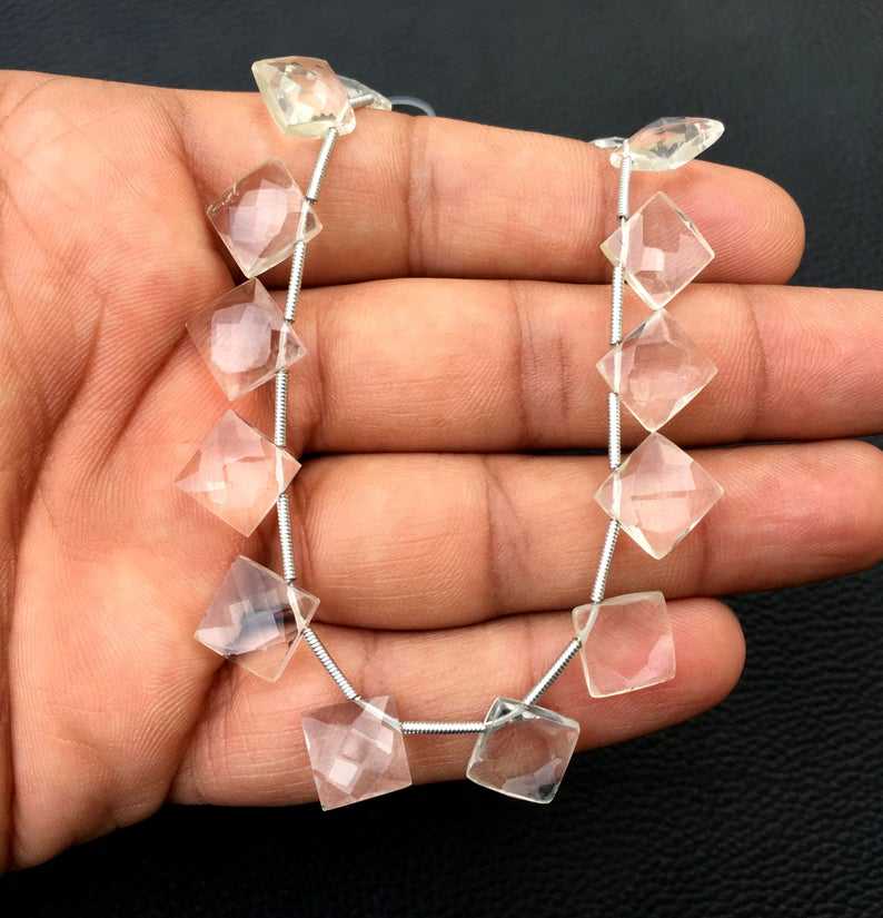 22-Piece Set of Amazing Natural Crystal Quartz Faceted Square Beads White Briolette Clear Briolette Wholesale