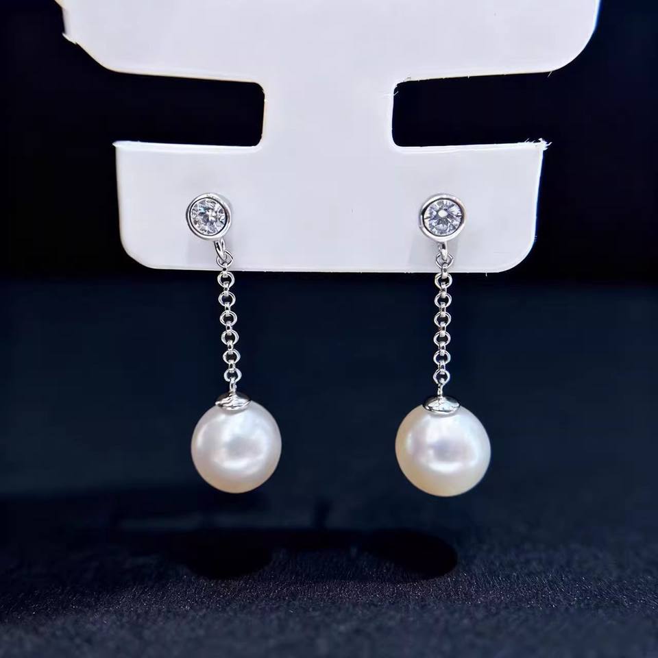 22050DIY Pure Silver S925 Pearl Accessories Empty Stand Gold Silver Round Earrings with 7-13mm DIY Earnail