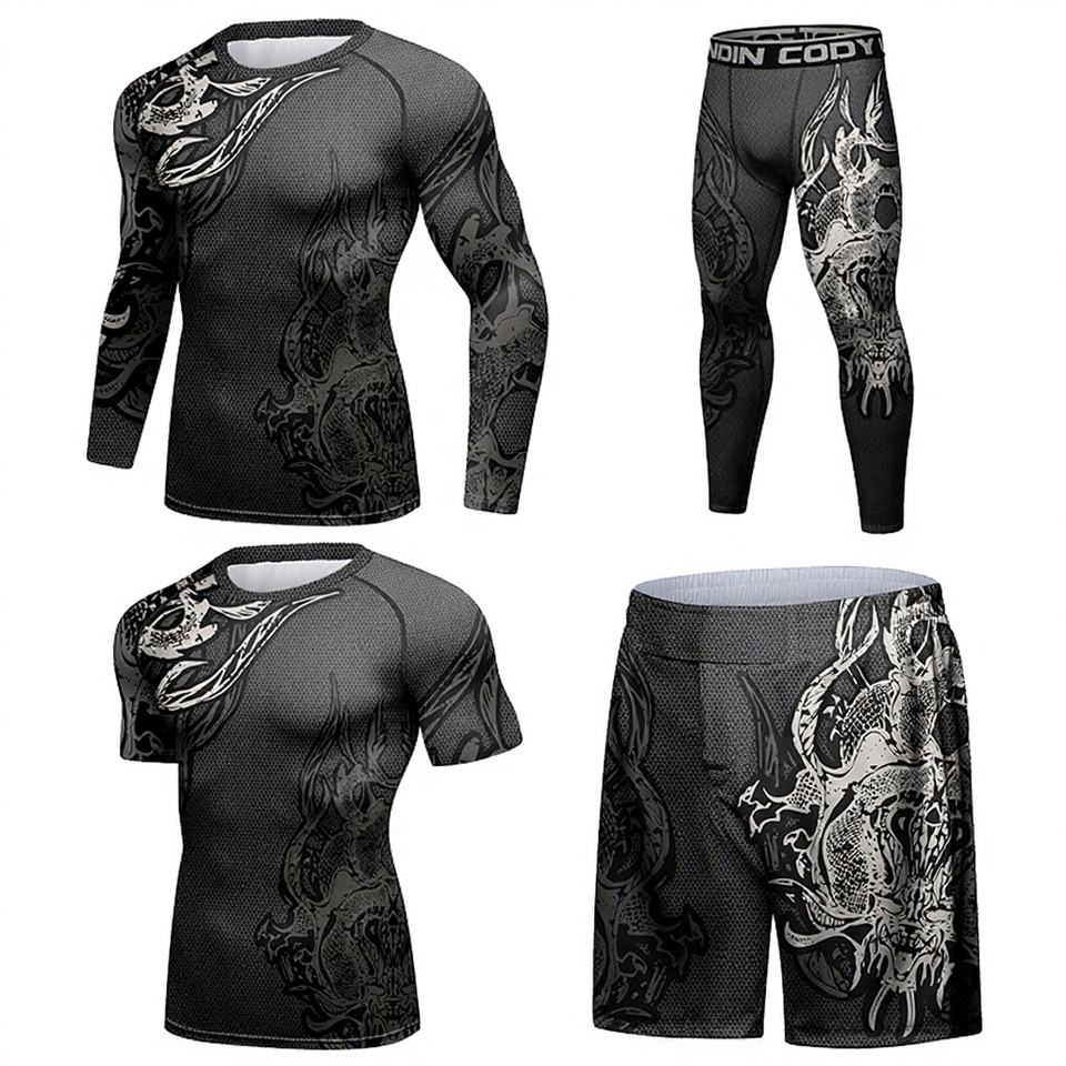 220GSM Thick Rash Guard Long Sleeve BJJ MMA Grappling Compression Shirt UPF50+ High Elasticity Polyester Spandex Front Gym