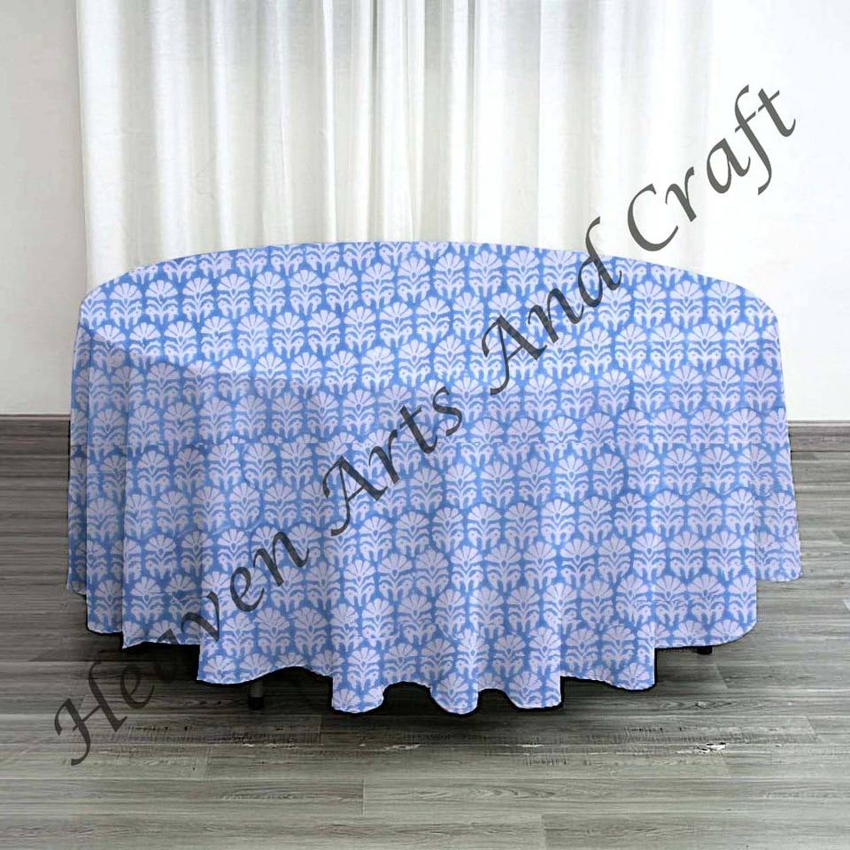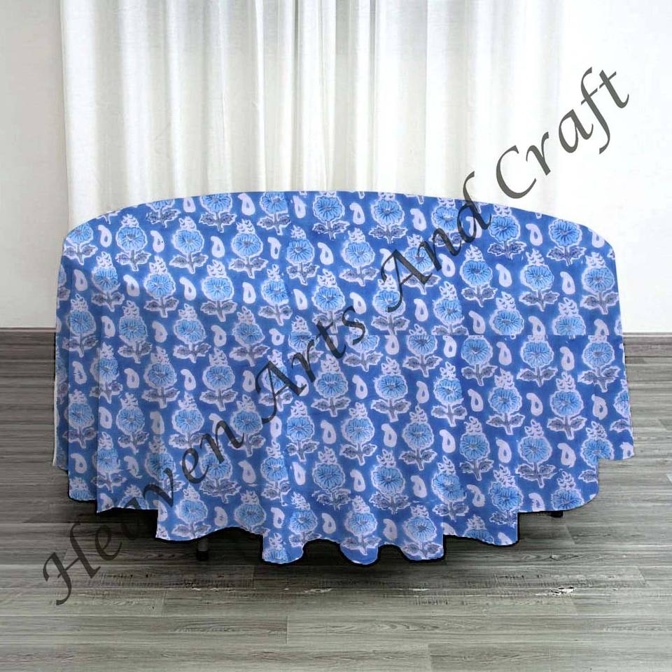 220cms Round Cotton Tablecloth Hand Block Printed Design Dining Table Soft Durable Fabric for Kitchen & Garden Wholesale Price