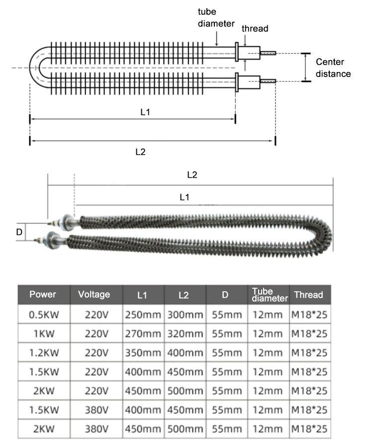 220v U Shape Stainless Steel Fryer Oven Tubular Coil Electric Finned air Heating element