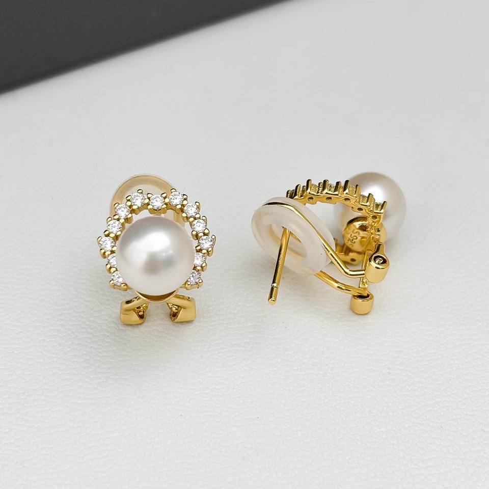 22362 S925 Silver DIY Pearl Accessories Simple Fashion Earrings with 7-9mm Round Beads and Empty Stand Fine Clip-on Accessory