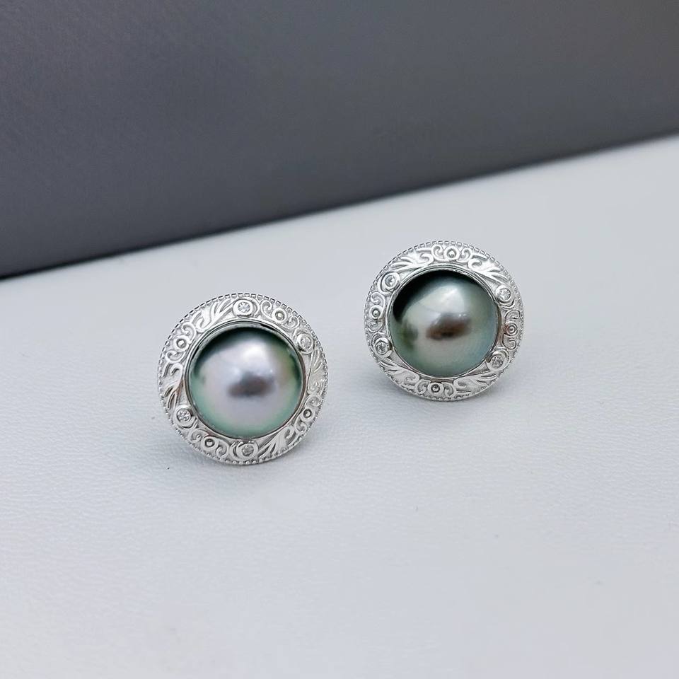 22397DIY S925 Silver Stud Earrings with 9-10mm Beads DIY Pearl Accessories Pearl Concealer Hollow Nail Bracket DIY Ear Studs