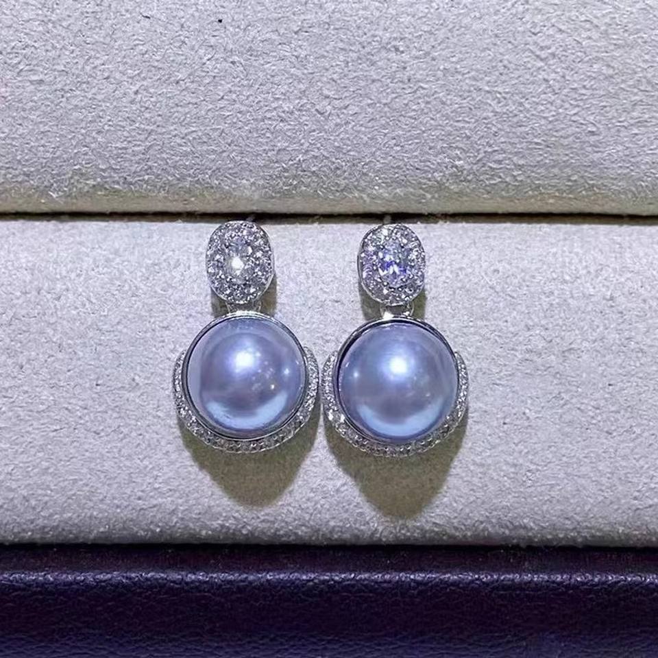 22412 DIY Pearl Accessories S925 Silver Earnail Empty Tray Fashion Silver Jewelry Earrings with 8-9mm Round Beads