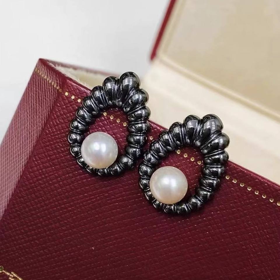 22425 DIY Pearl Accessories S925 Silver Earnail Empty Tray Fashion Silver Stud Earrings with 6-7mm Round Beads