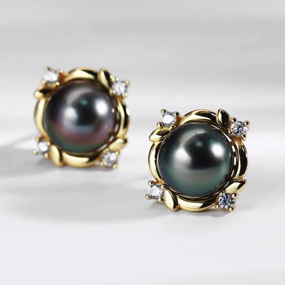 22509DIY Pearl Accessories S925 Silver Ear Nail Hollow Holder Concealer Silver Earrings with 10-11mm Round Beads