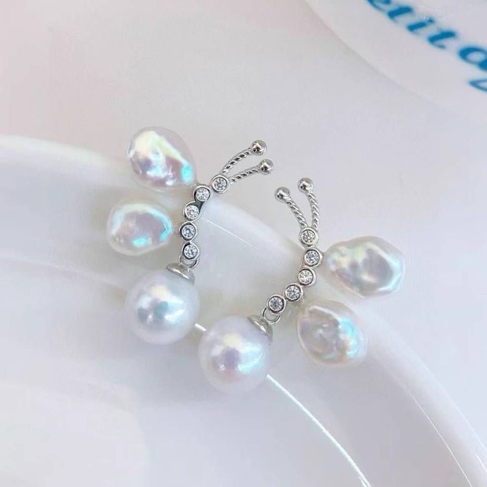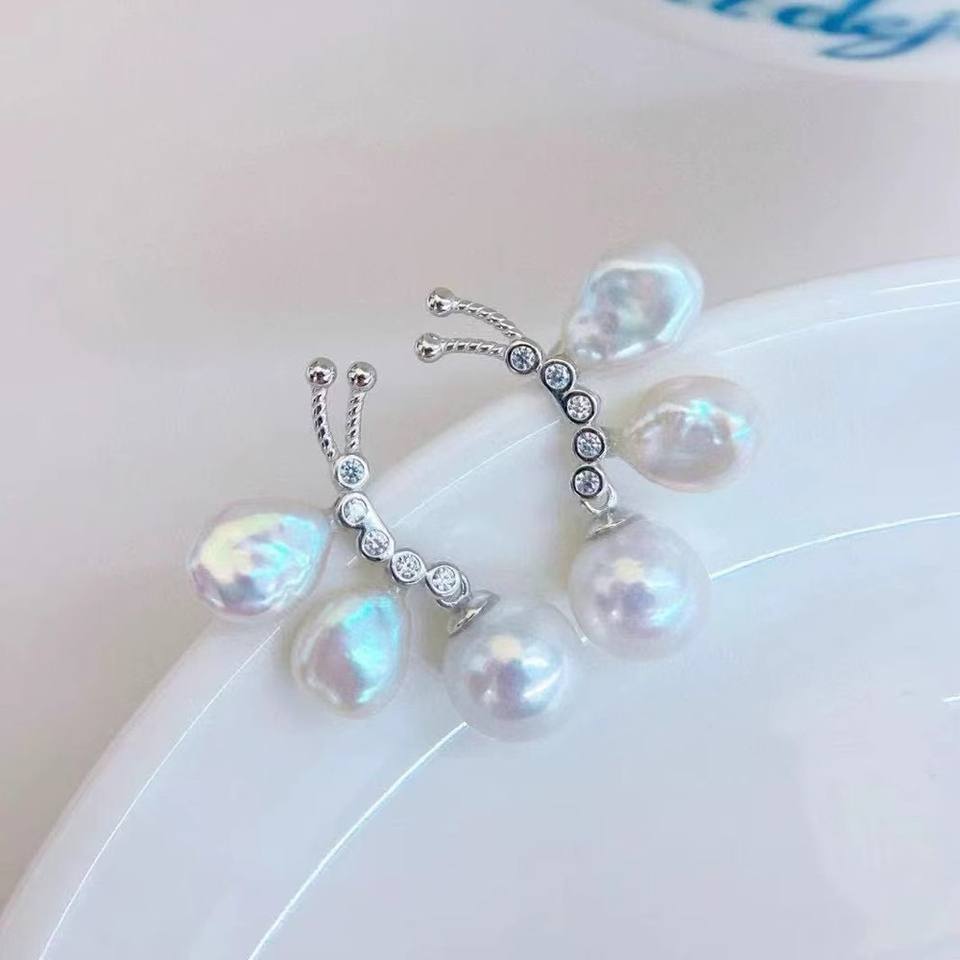 22577 DIY Pearl Accessories S925 Silver Earnail Empty Tray Butterfly Silver Jewelry Earrings with 4-9mm Round Beads