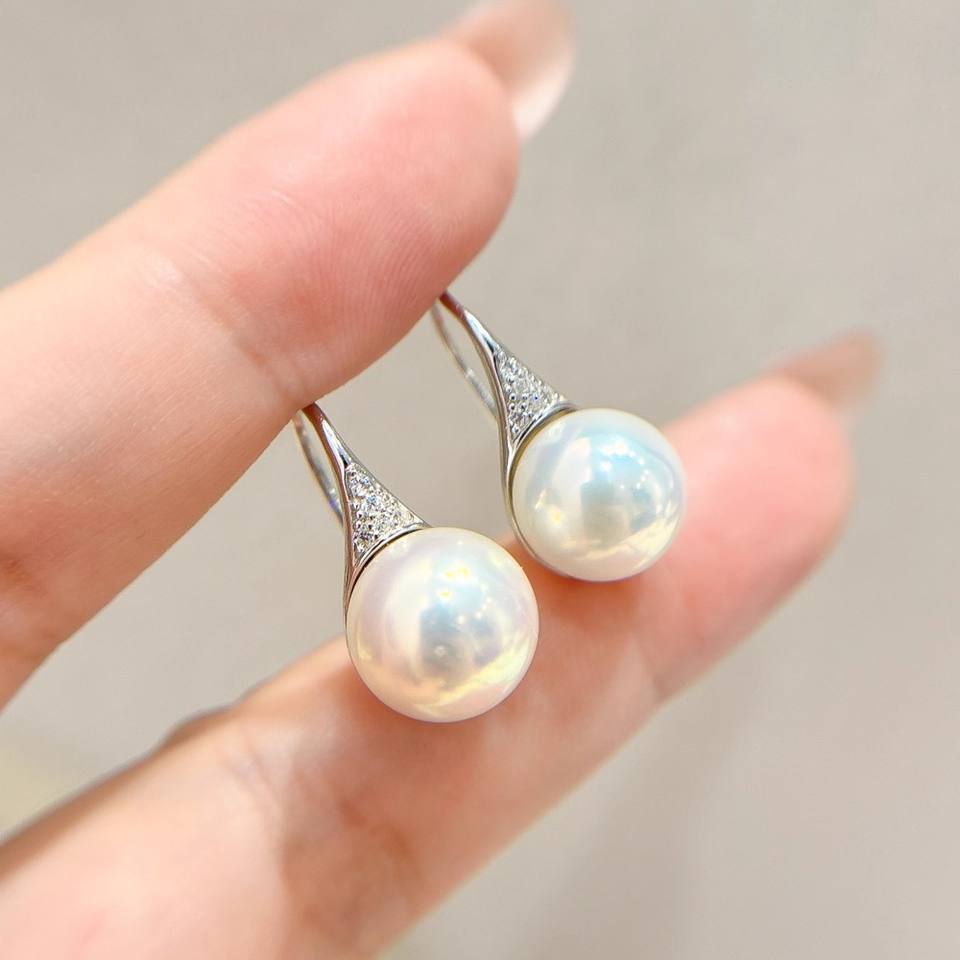 22658DIY Pearl Accessories S925 Silver Earnail Empty Tray with 10-13mm Round Beads Fashion Earhook for Earrings