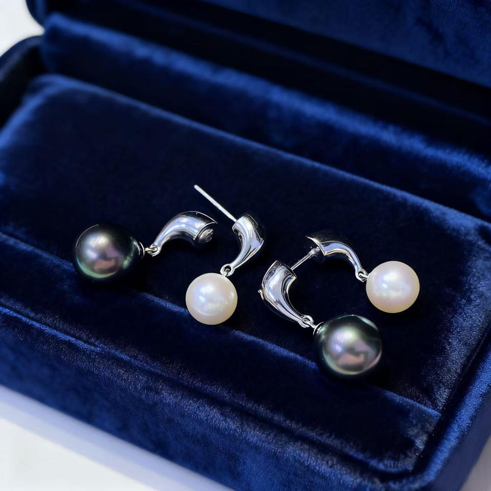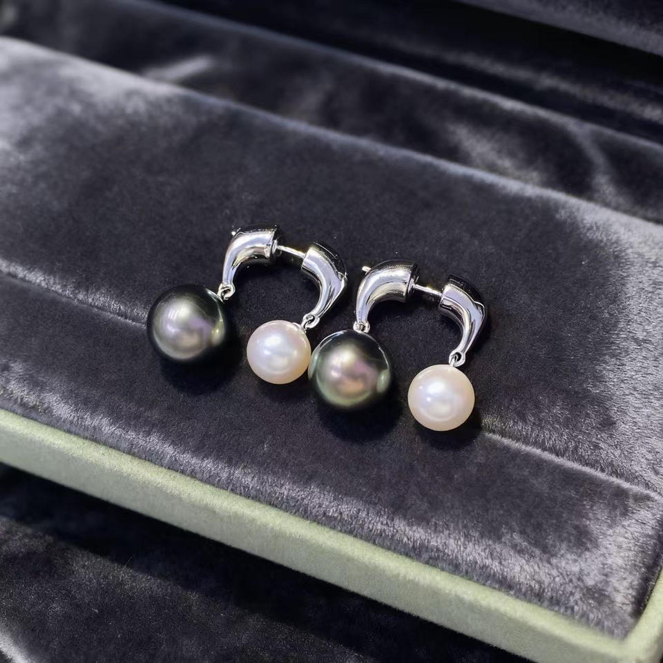 22687 DIY Pearl Accessories S925 Silver Double Pearl Earrings with 6-11mm Round Gold Silver Empty Stand 6-11mm Round