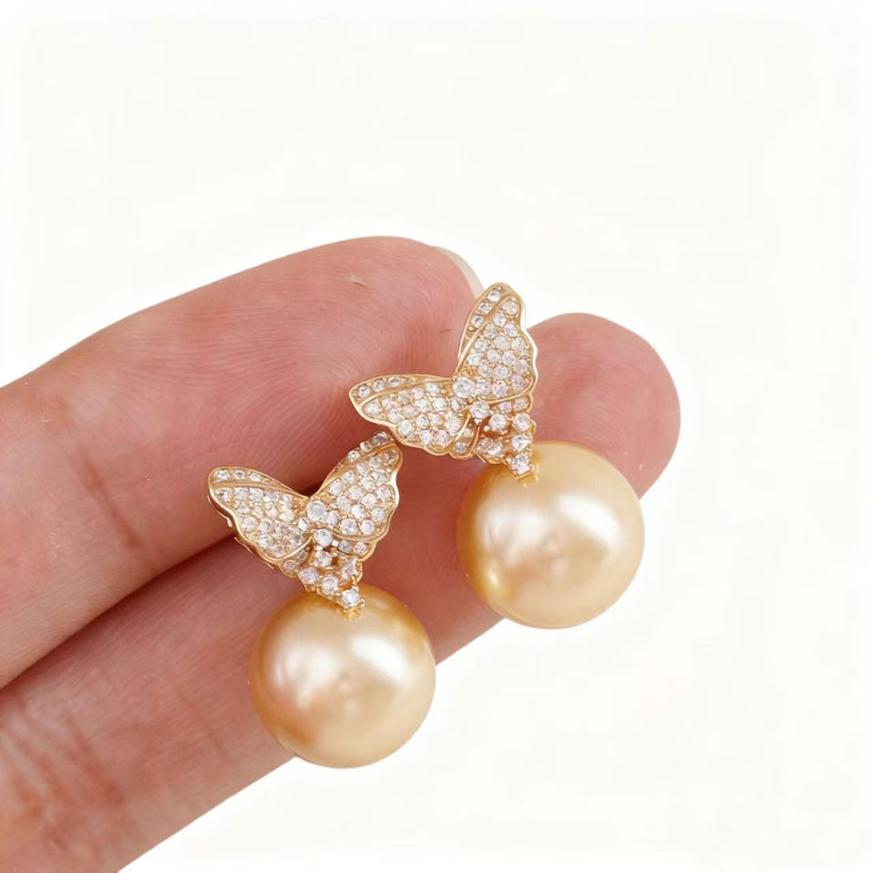 22690 DIY Pearl Accessories S925 Silver Earnail Empty Stand Gold & Silver Jewelry Earrings with 9-13mm Round Pearl