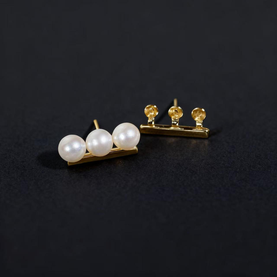 WENCHI 11018 DIY Pearl Accessories S925 Silver Earnail Empty Stand Gold/Silver Three Pearl Earrings with 6-7mm Round Beads