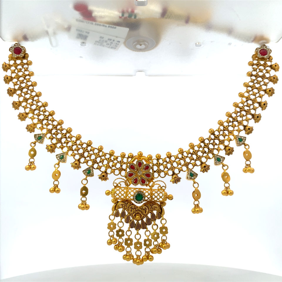 22K Gold Antique Choker Set Ruby Emerald Traditional Temple Jewelry