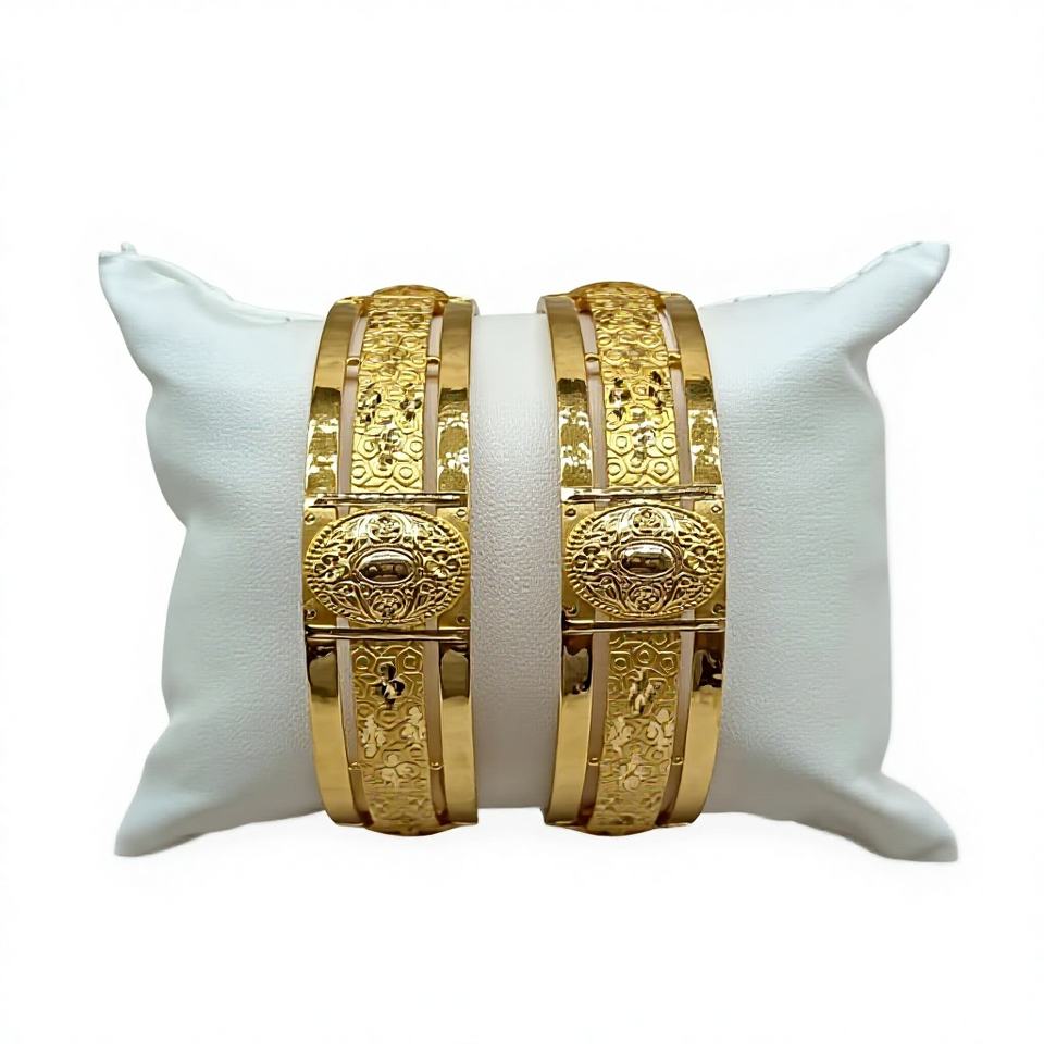 22K Solid Gold Bangle Set for Women Traditional Indian Gold Kada Pair Elegant Handcrafted Yellow Gold Bracelets