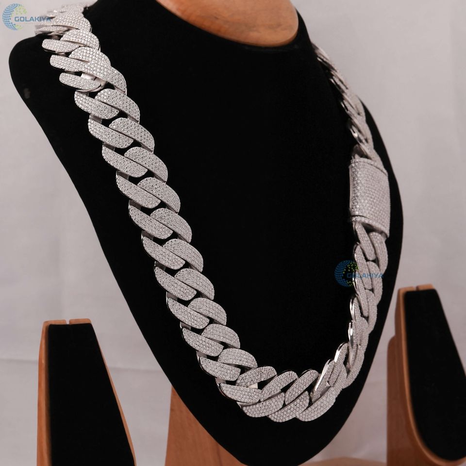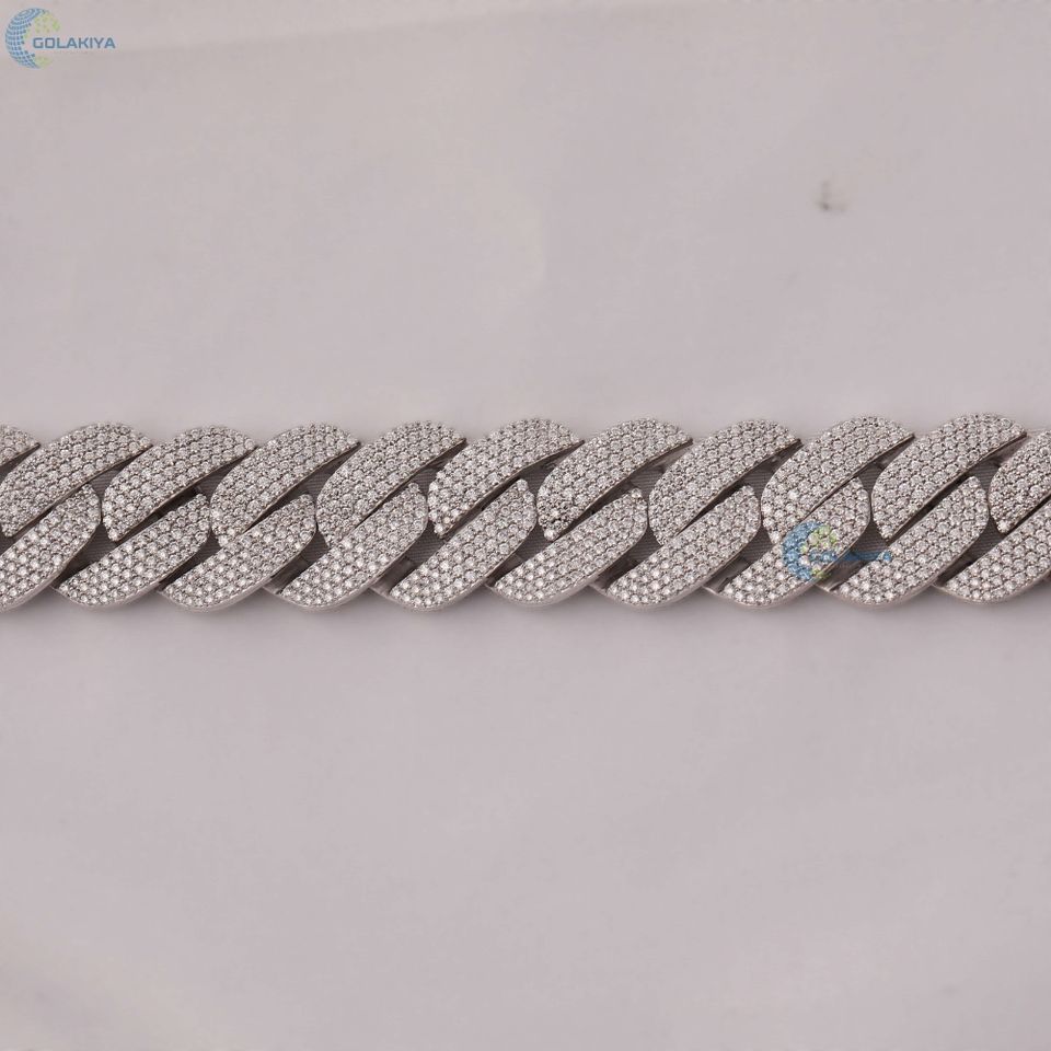 22MM Iced Out Colorless Moissanite Hip Hop Chain Solid White Gold Plated Cuban Link Chain For Him