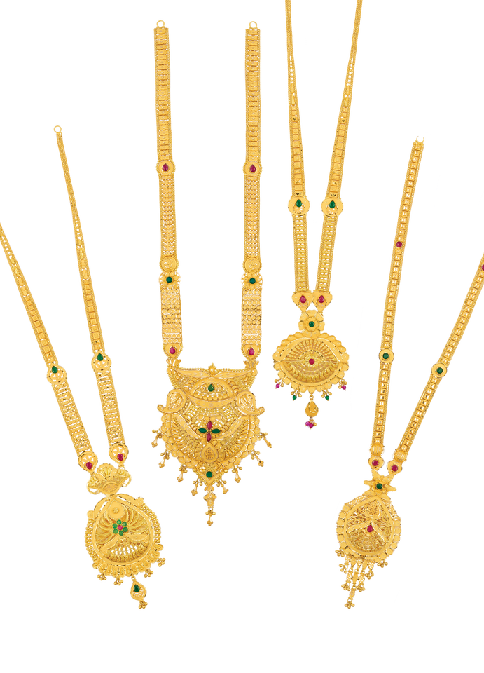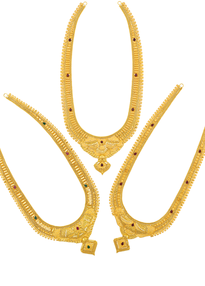 22k Solid Gold Long Necklace Indian Traditional Rani Haar Bridal Wedding Jewelry Necklace Set With Pendant