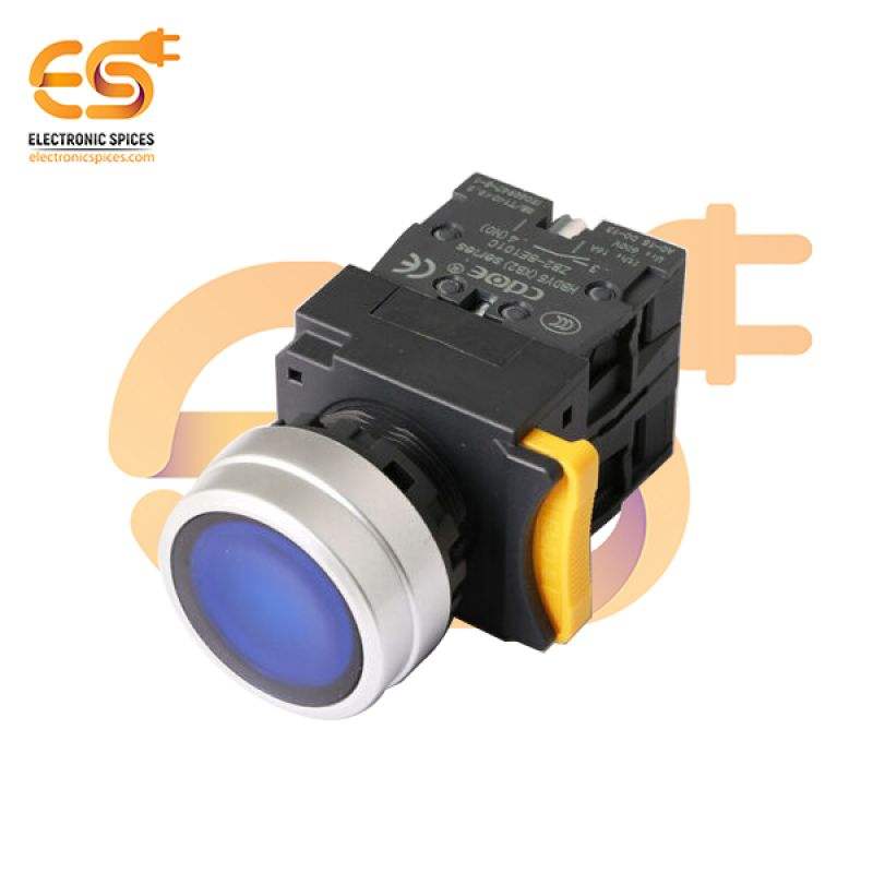 22mm 10A 600V Blue Head Push Button Switch Flat Top with Screw Terminal Momentary 1NO1NC IP65 Plastic Material