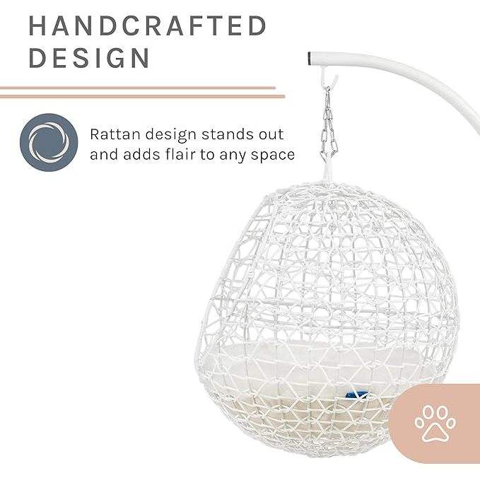 23.5in Cozy Wicker Bed Hanging Egg Cat Condo with 2 Washable Cushions White PP Material Removable Small Animal/Dog Bed for Sleep