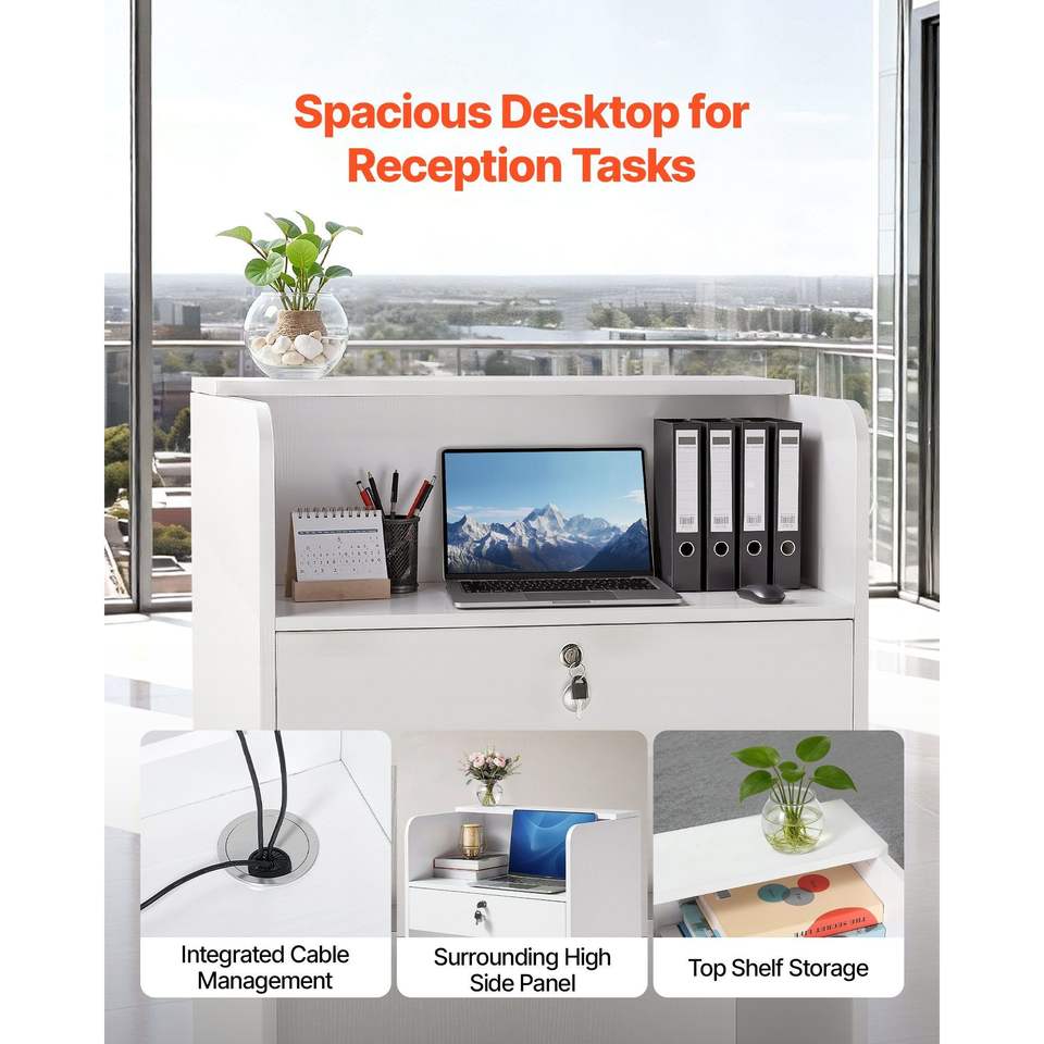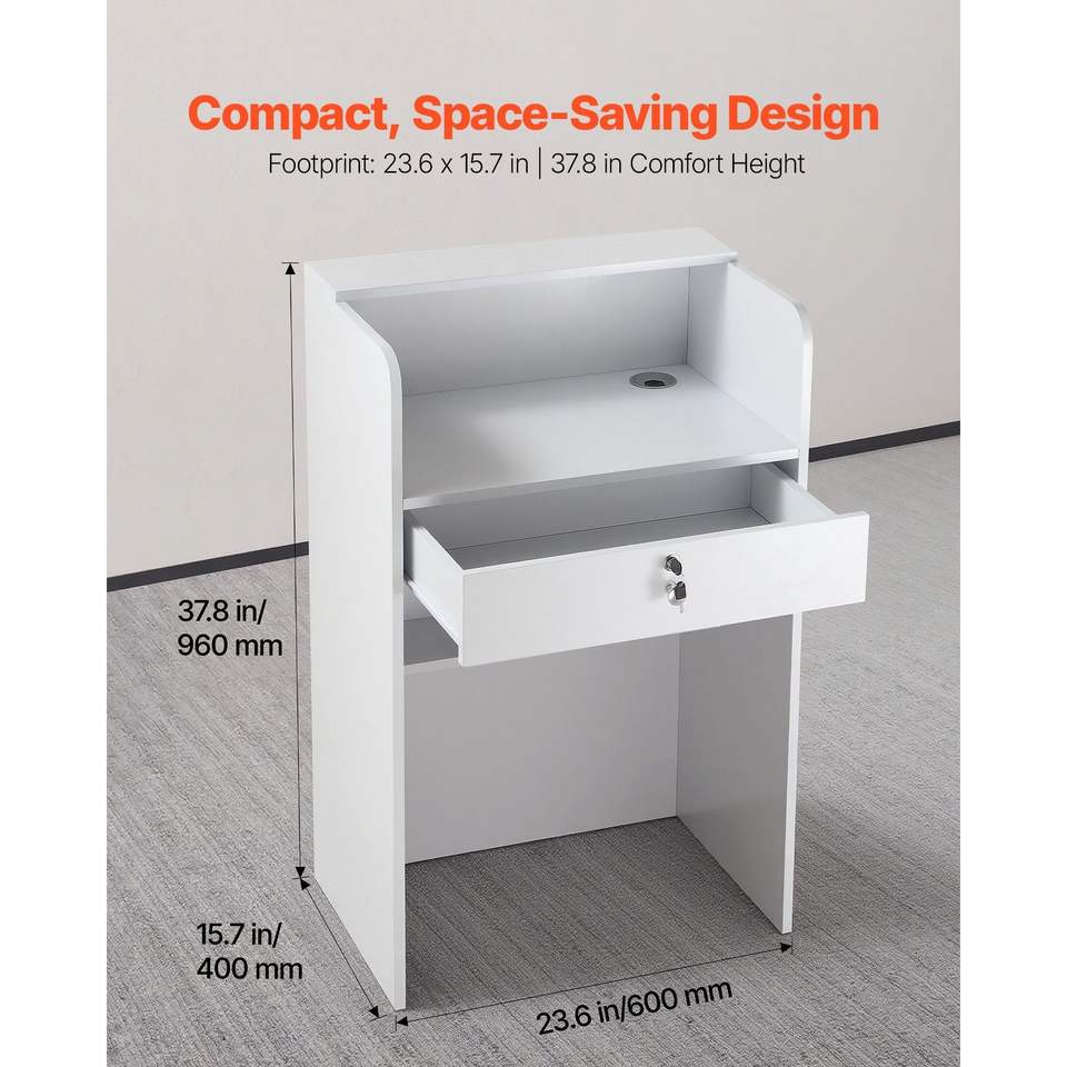 23.6 Inch Modern Office Rectangular Reception Desk Minimalist Small Drawer Front Counter Table for Retail Co