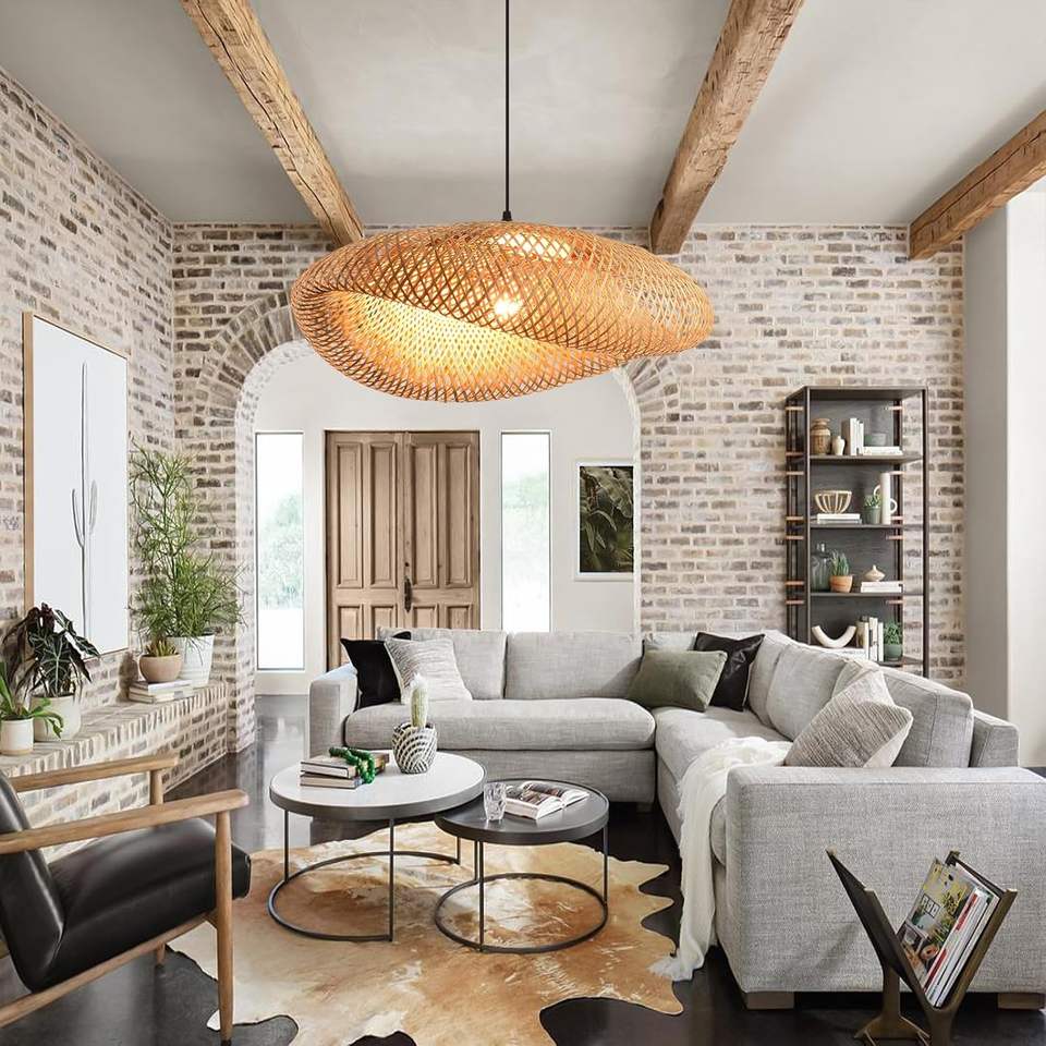 23.64" Boho Chandelier Handwoven Bamboo Rattan Pendant Light Fixture Large Wicker Hanging Ceiling Lamp Kitchen Island Dining