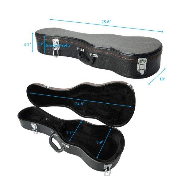 23\" Concert Python Pattern Black Leather Ukulele Case Replace 9103892 for Musical Instrument Protection
