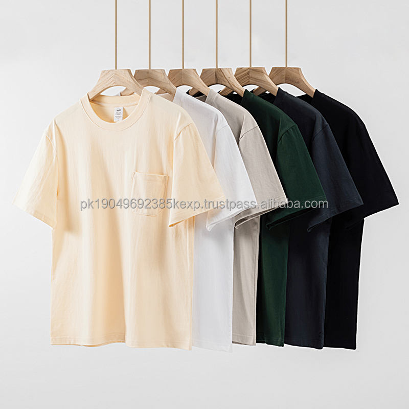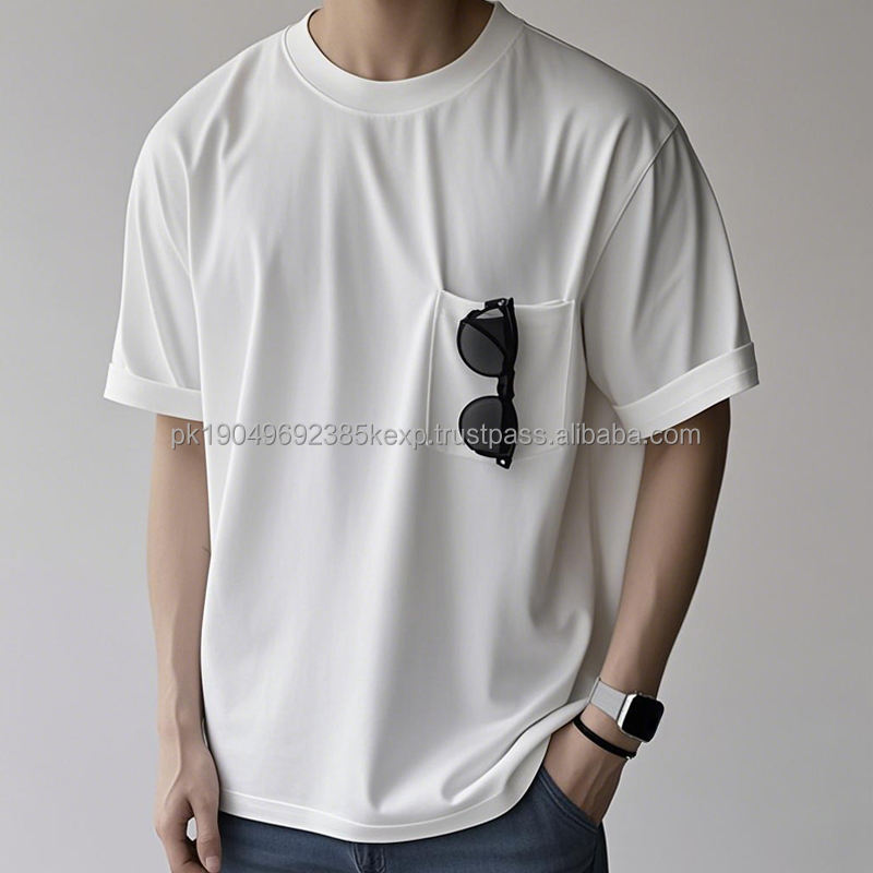 230 Gsm Summer Round Neck Plain Short Sleeves T-Shirt with Chest Pocket Custom 100 % Cotton White Men's T Shirt