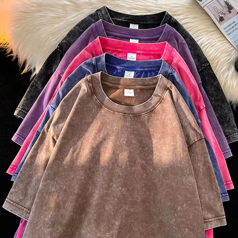 230g 100% Cotton Retro Punk T-shirt Drop Shoulder Sleeve Men Women Vintage Short Sleeved T Shirts Solid Color Hip Hop Loose Tees